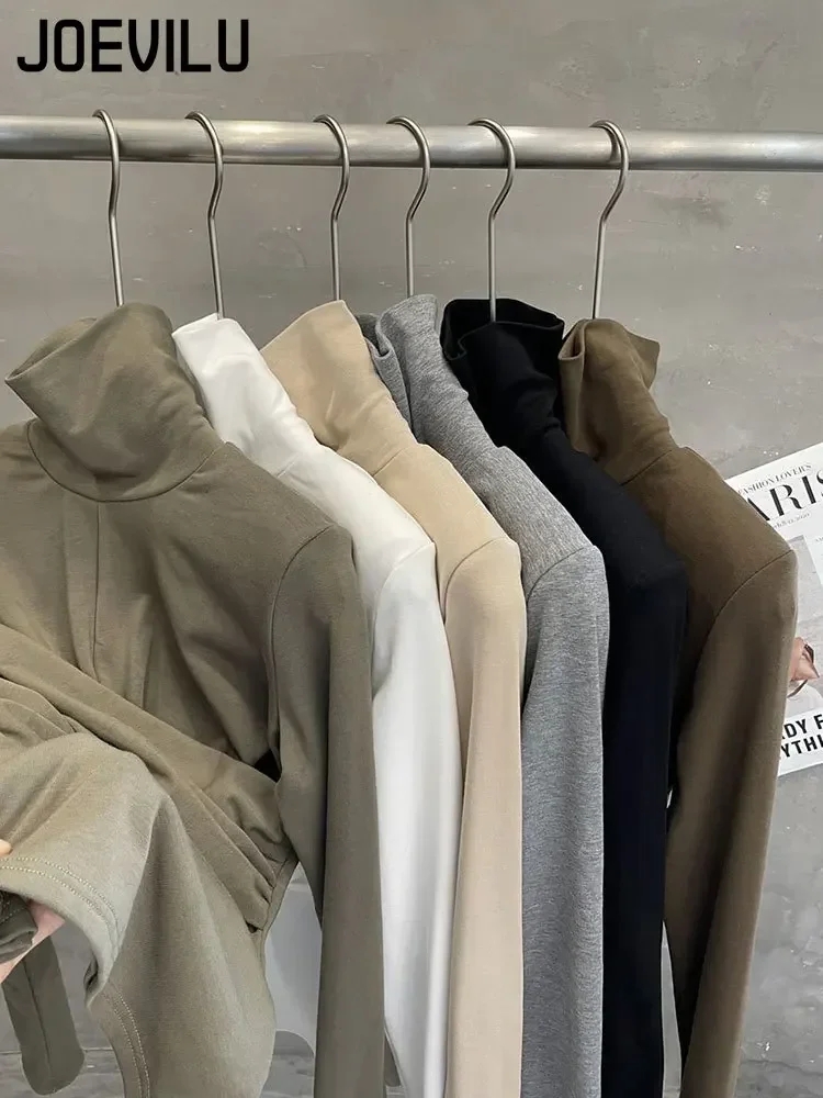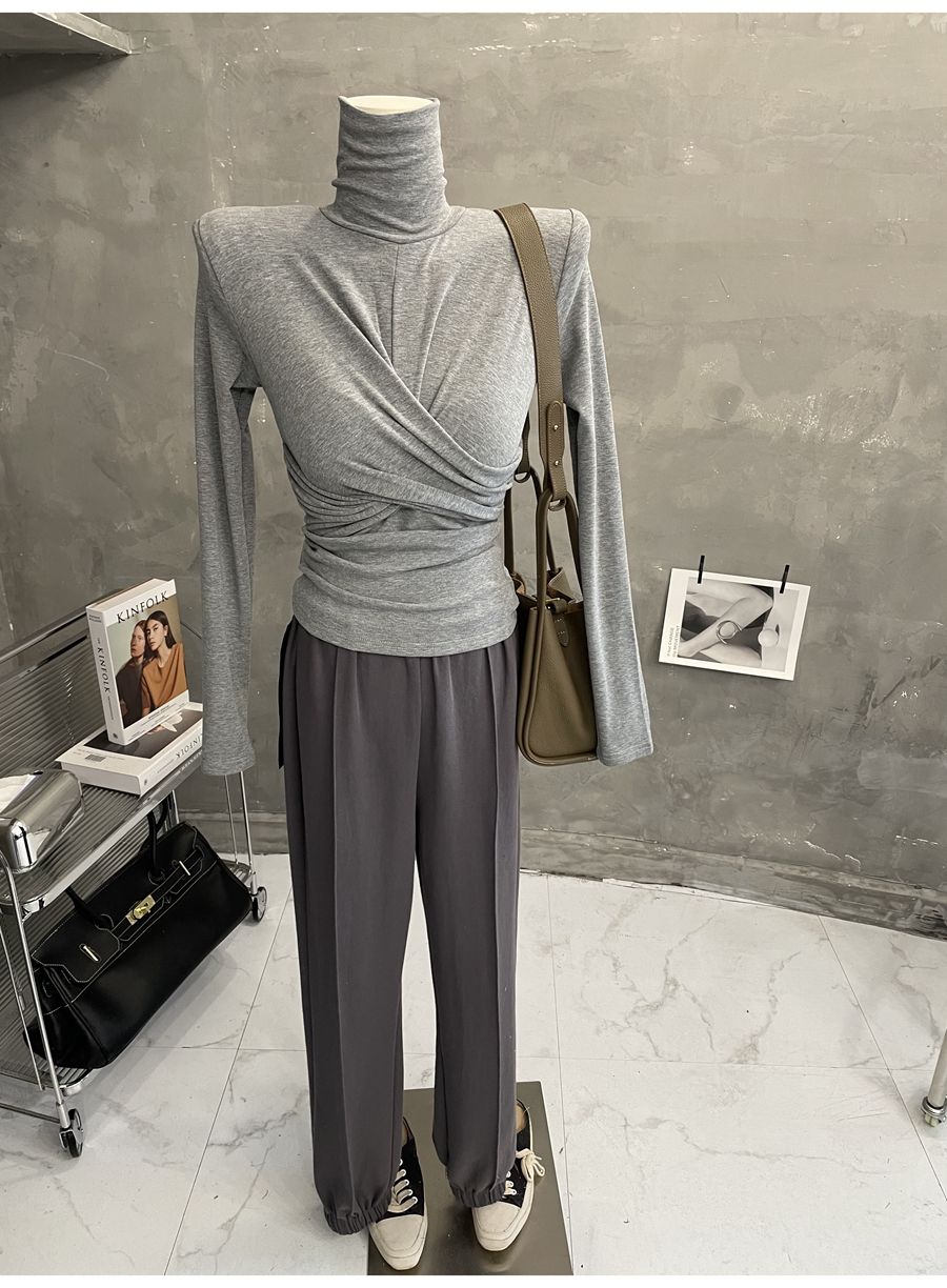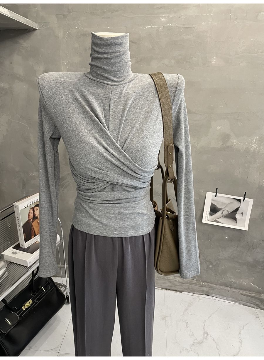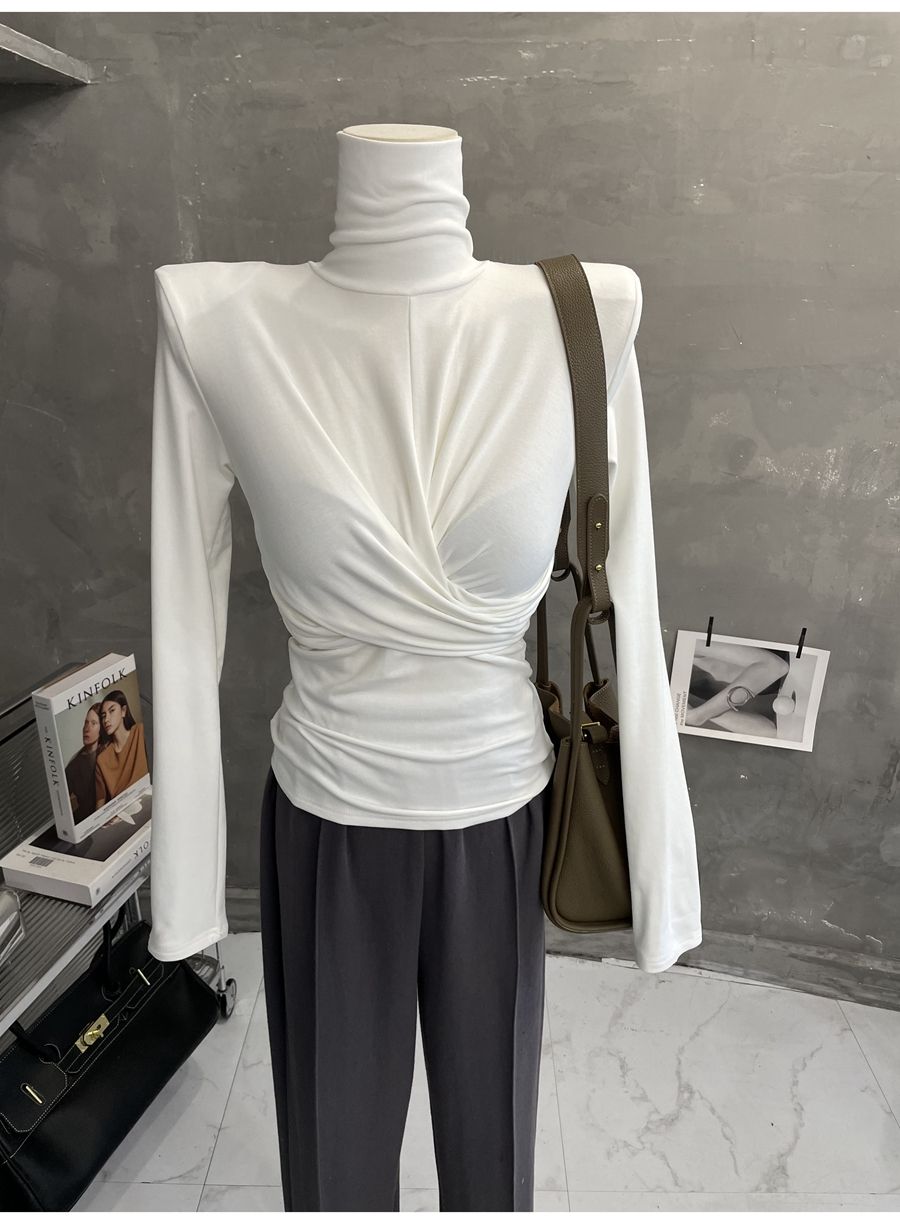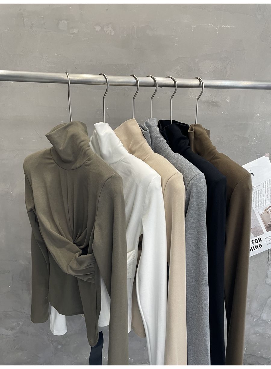 Season: Autumn/Winter Clothing Length: Regular Gender: Women Elasticity: Medium Stretch Sleeve Style: Regular Pattern Type: Solid Collar: Turtleneck Material: Polyester Support: Wholesale, Drop shipping Decoration: Folds Dress style: Pullover Fabric Type: Blended 105℃挥发物≤: JOEVILU Tops Type: Tees CN: Zhejiang |Twisted Top Sexy| **Elegant Autumn/Winter Essential** Embrace the chill with our Turtleneck Base Shirt for women, a blend of style and comfort designed to keep you warm and fashionable during the cooler months. The turtleneck style adds a classic touch, while the solid color and medium stretch fabric ensure a versatile wardrobe staple that can be dressed up or down. The regular clothing length provides a flattering fit, while the full-length sleeves offer additional warmth. This top is crafted from a high-quality blended fabric that meets the JOEVILU standard for low volatile organic compounds (VOC) emissions, ensuring a sustainable and health-conscious choice. **Versatile Design for the Modern Woman** Incorporate this sexy twisted top into your wardrobe for a touch of sophistication and allure. The Korean fashion-inspired design, paired with a slim fit, makes it a must-have for fashion-forward women. Whether you're heading to the office or out for a night on the town, this top seamlessly transitions from day to night. The unique twisted detailing adds a playful yet chic element to the classic turtleneck style, making it a standout piece in your collection. **Comfort Meets Style** The Turtleneck Base Shirt is designed with the modern woman in mind, offering both style and comfort. The plush pullover design ensures ease of wear, while the medium stretch fabric accommodates a range of body types. The pullover style eliminates the need for fasteners, providing a seamless look that's easy to layer or wear alone. With its solid color pattern and classic turtleneck collar, this top is a versatile addition to any wardrobe, perfect for junior to adult women seeking a blend of trendiness and timelessness.