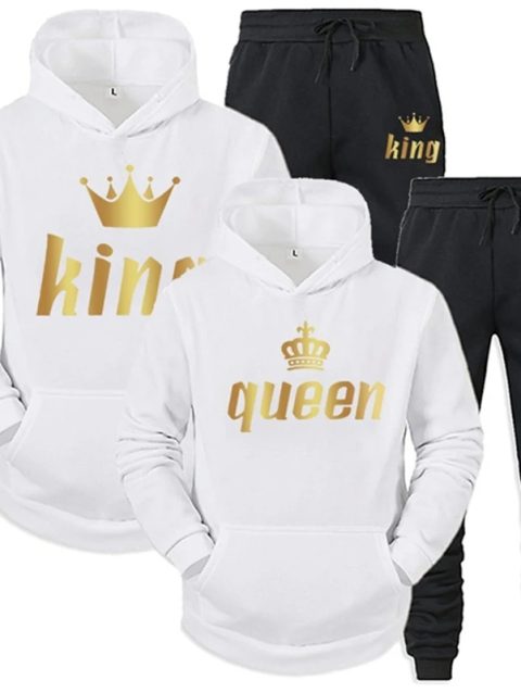 King And Queen Couple Outfit Hoodie and Jogger Pants High Quality Men Women Daily Casual Sport Jogging Suit King Queen Tracksuit