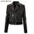 Nerazzurri Autumn Black Soft Faux Leather Cargo Jumpsuit Women Long Sleeve Zipper Luxury Designer Clothes 5xl 6xl 7xl