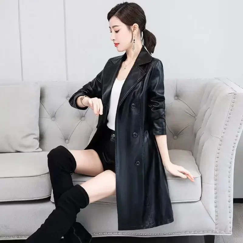 2024 Coat Women’s Fall/Winter Explosions PU Leather Jacket New Ladies Western Style Short Denim Lapel Outwear Fashion Trend Tops