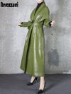 Women Shirt Collar Zipper Pocket Flare Leg PU Leather Jumpsuit Female High Street Leather Slim Long Sleeve Jumpsuit Rompers 2025