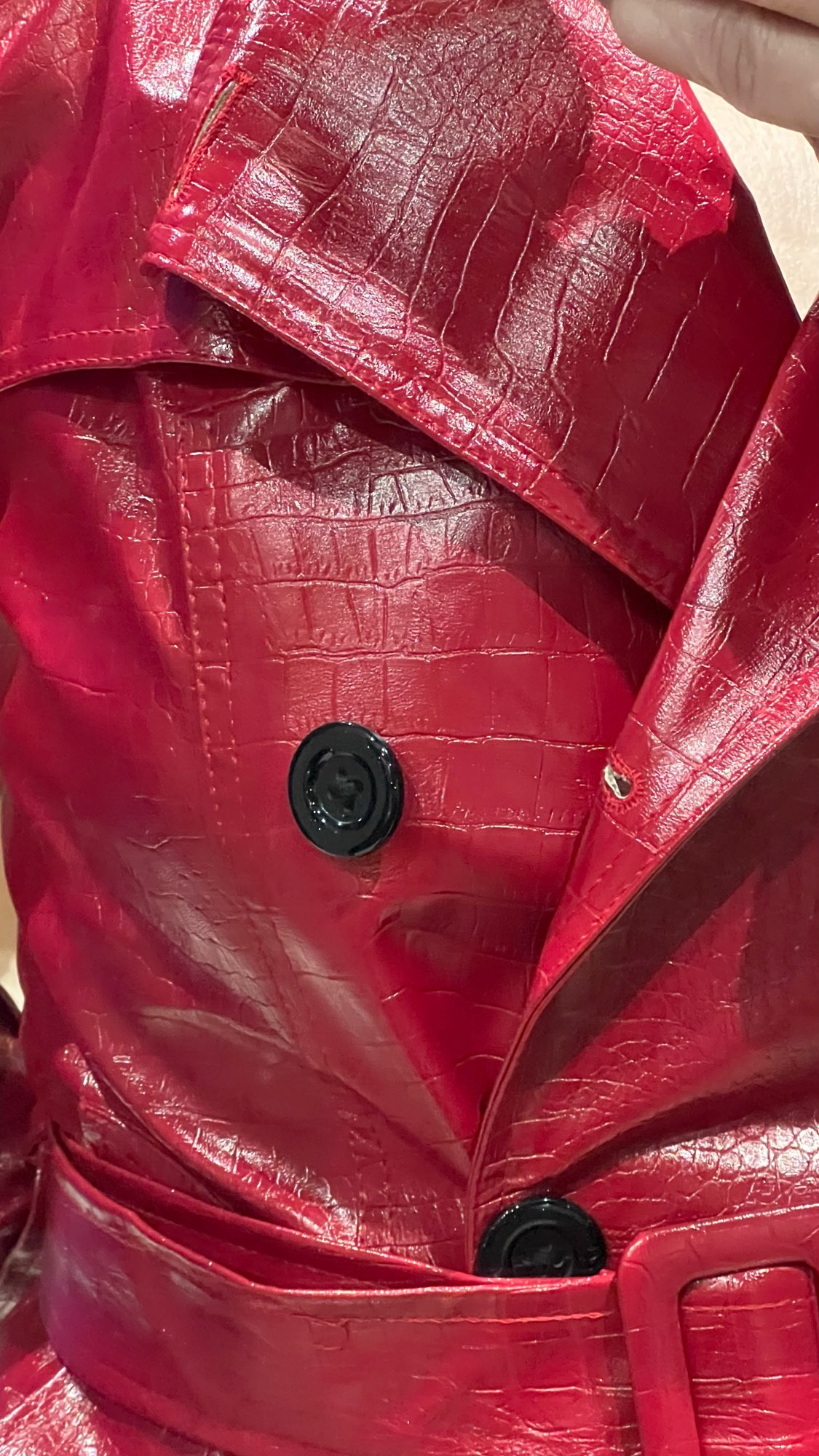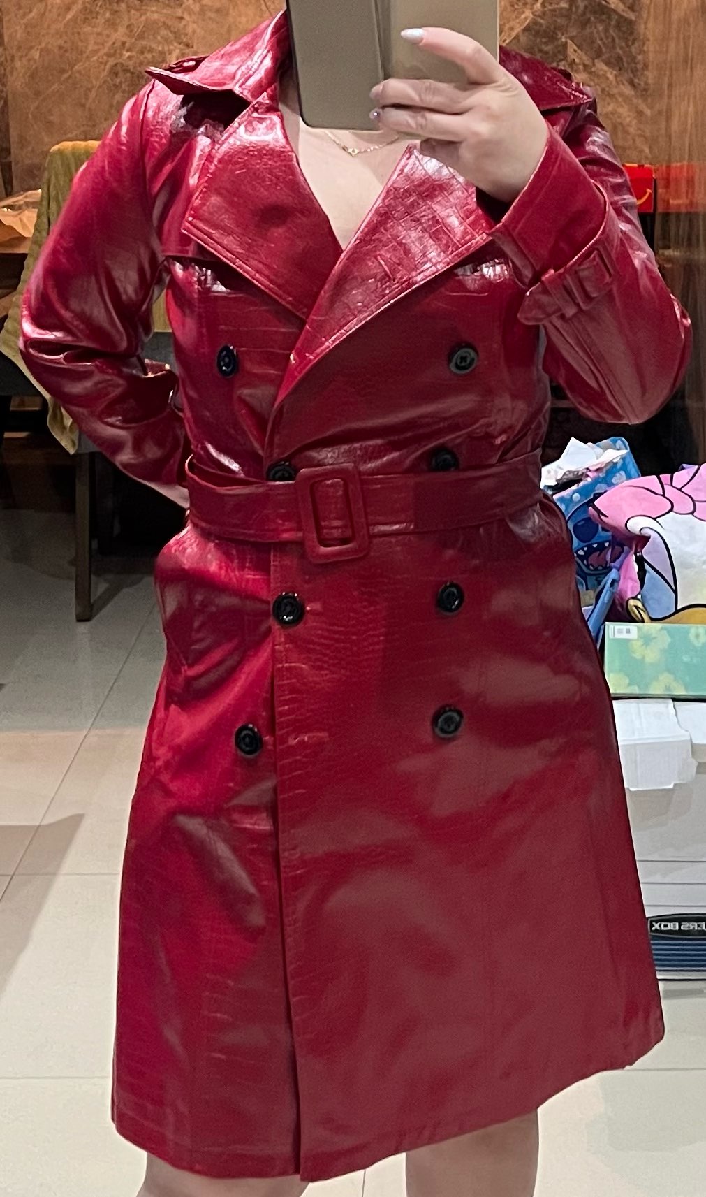 Tal cual a las imágenes! Me encantó! No es tan brilloso como en las fotos, pero no es opaco tampoco! Es un rojo brilloso como charol pero perfecto! Me encantó! Luce genial 100/100 la medida viene exacta como lo indica.