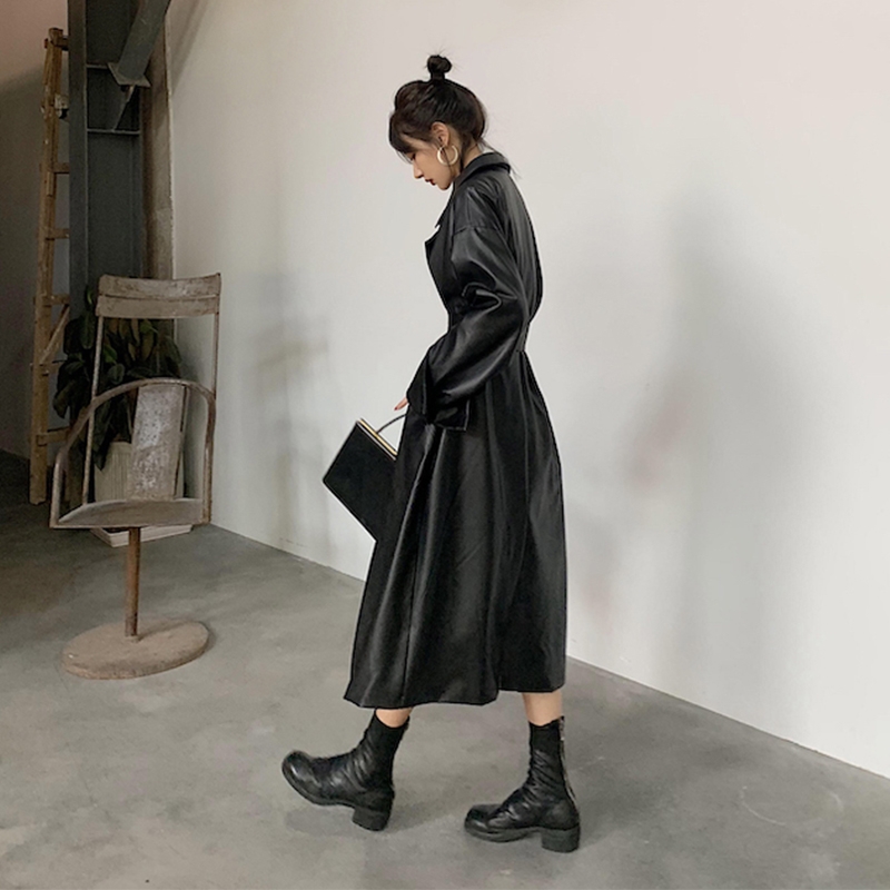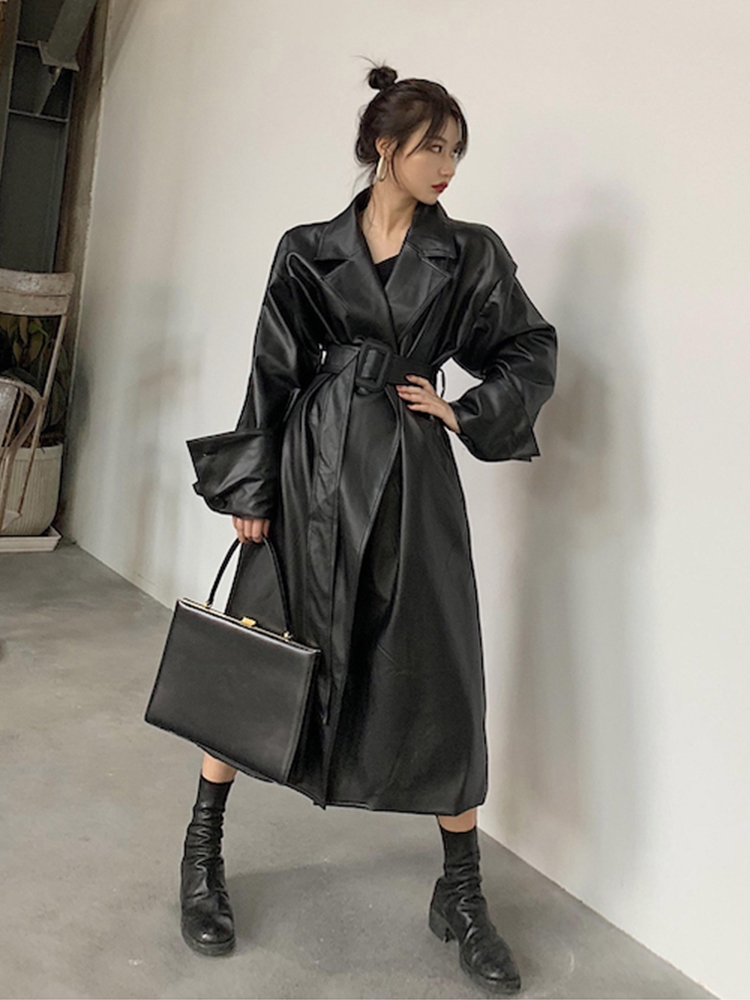 Bonboho 2024 Women’s Elegant Blazer Jacket Solid Black Slim Long Sleeve Extra-Long Splited Blazer Coat Female Formal Outerwear