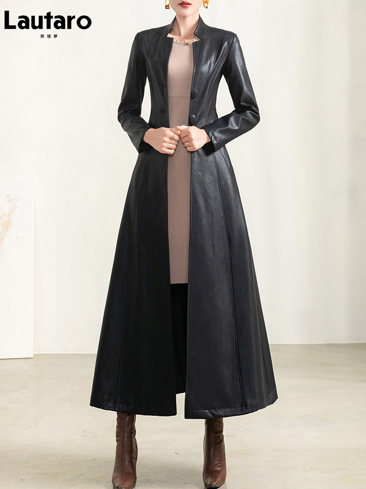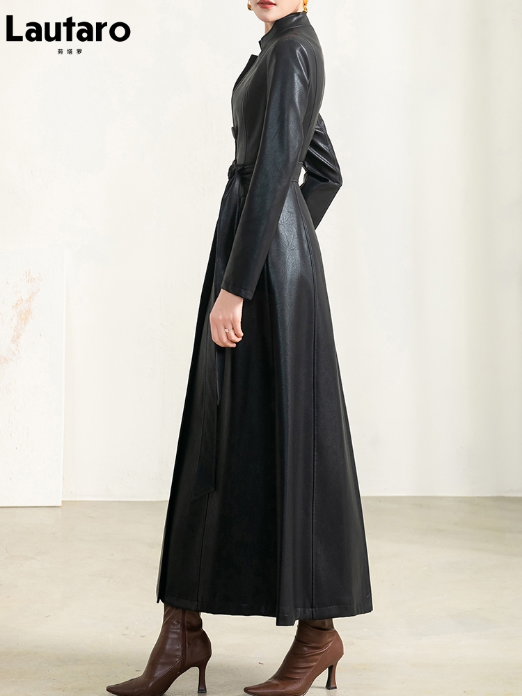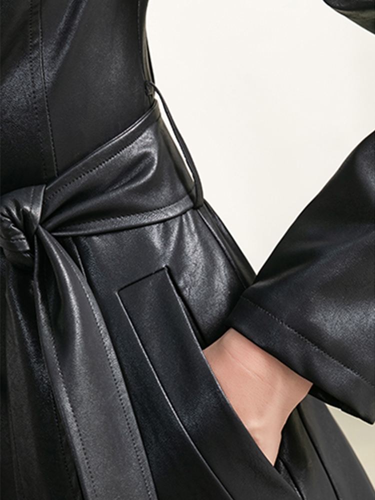 Women Shirt Collar Zipper Pocket Flare Leg PU Leather Jumpsuit Female High Street Leather Slim Long Sleeve Jumpsuit Rompers 2025