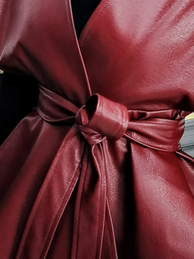 OL6163 Red Faux-Leather Sleeveless Jumpsuits Women Rompers Womens Button Details PU Leather Fitted Jumpsuits