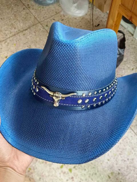 Navy blue western cowboy straw hat custom men and women retro jazz straw hat hollow hat sun hat sombrero cowboy