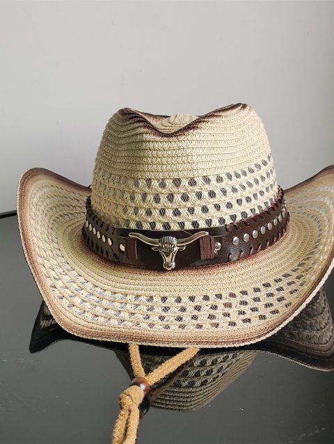 Holllow Cowboy Straw Hat Women Men Summer Handmade Vintage Hollow Western brim Sun Protection Fisherman Mountaineering Bohemian