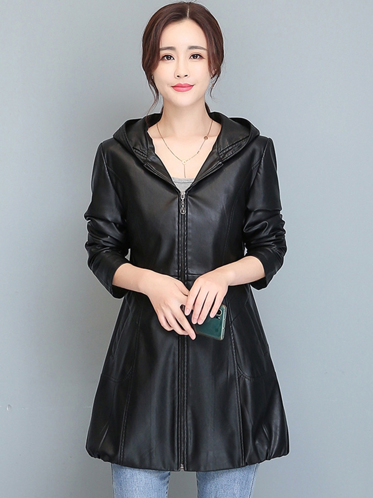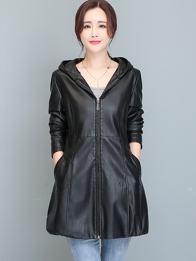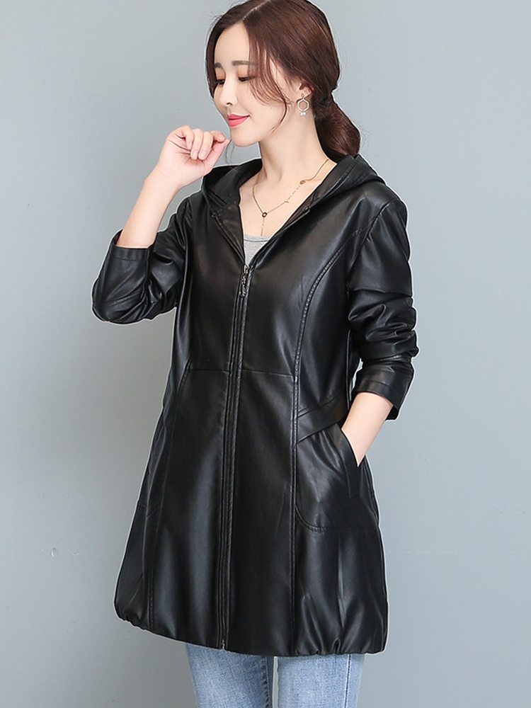 Women Shirt Collar Zipper Pocket Flare Leg PU Leather Jumpsuit Female High Street Leather Slim Long Sleeve Jumpsuit Rompers 2025