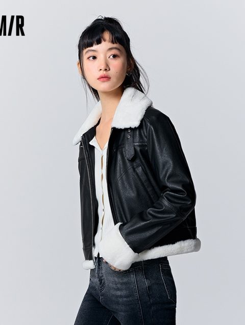 Semir Short Jacket Women PU Faux Leather Quilted Cropped Coat 2025 New Winter Street Style Cool Outerwear for Petite Girls