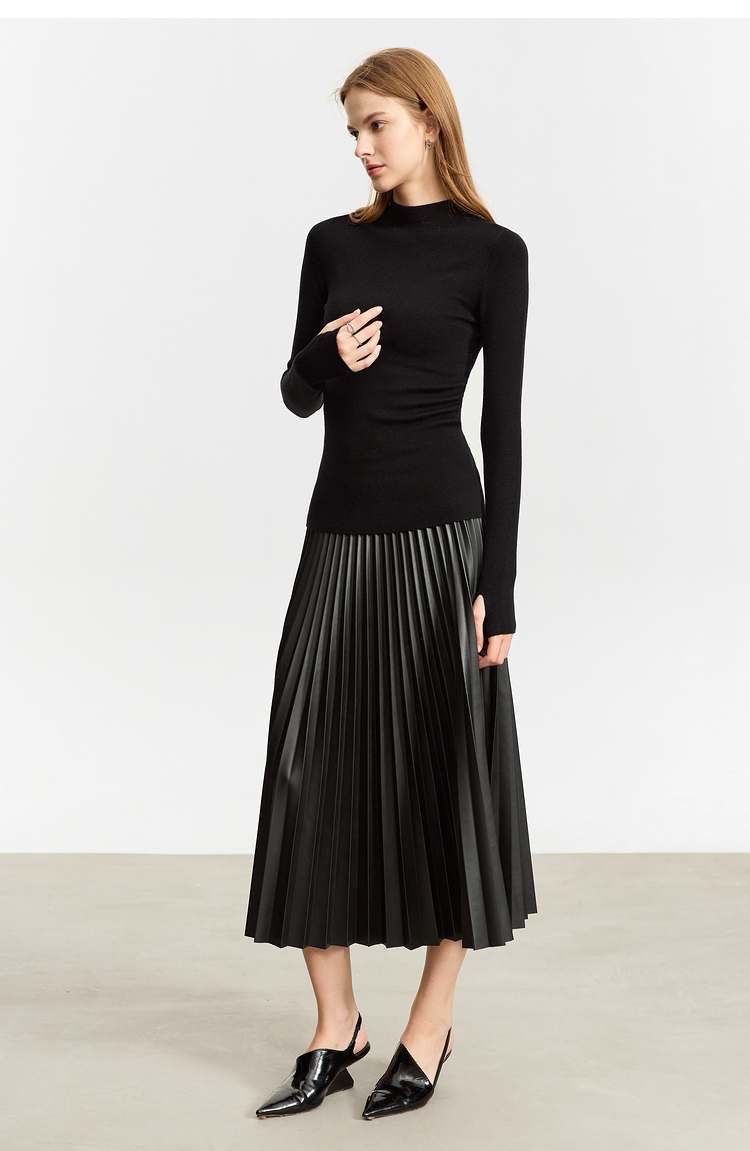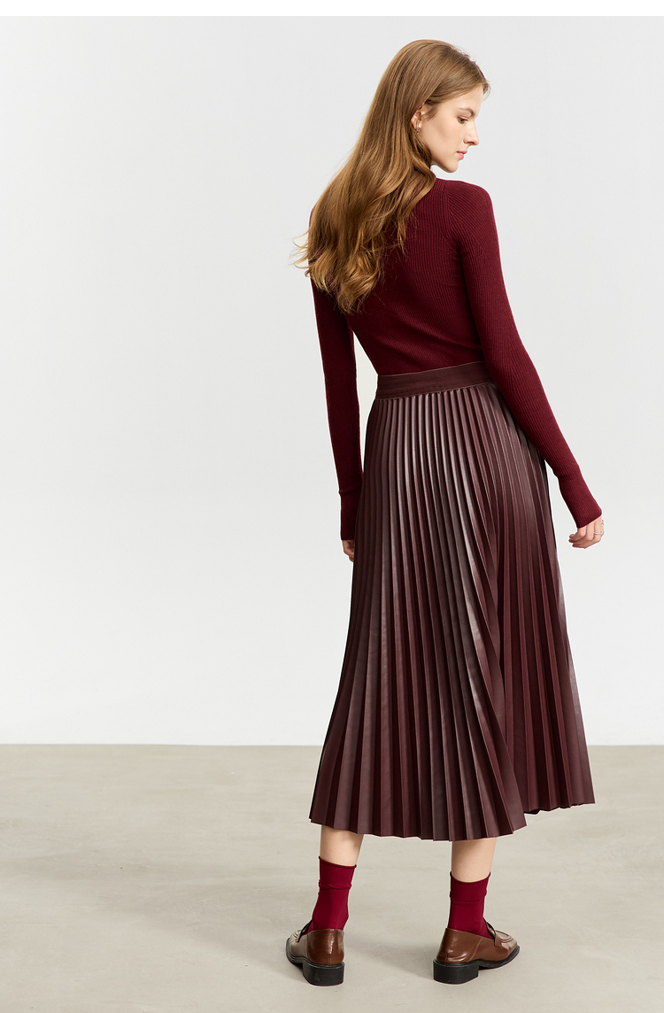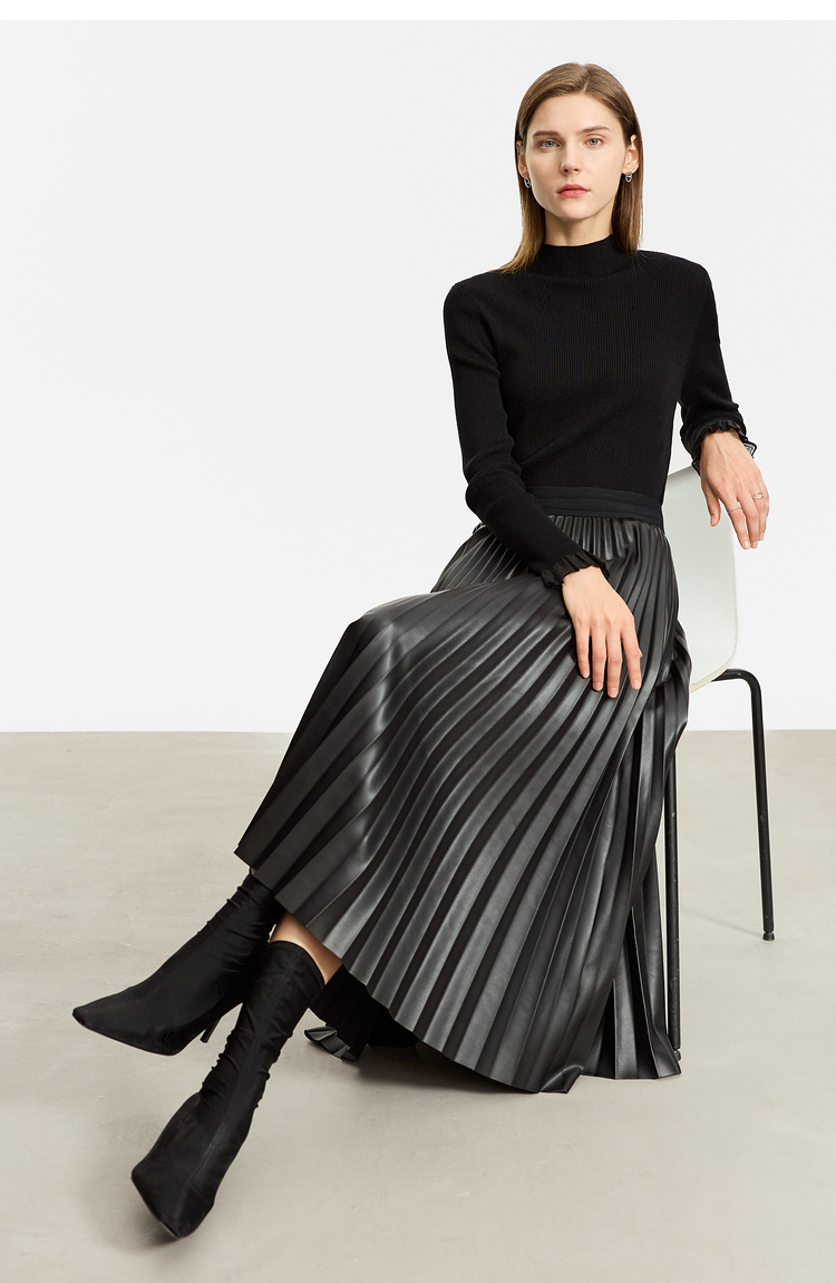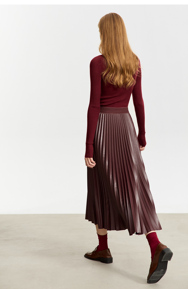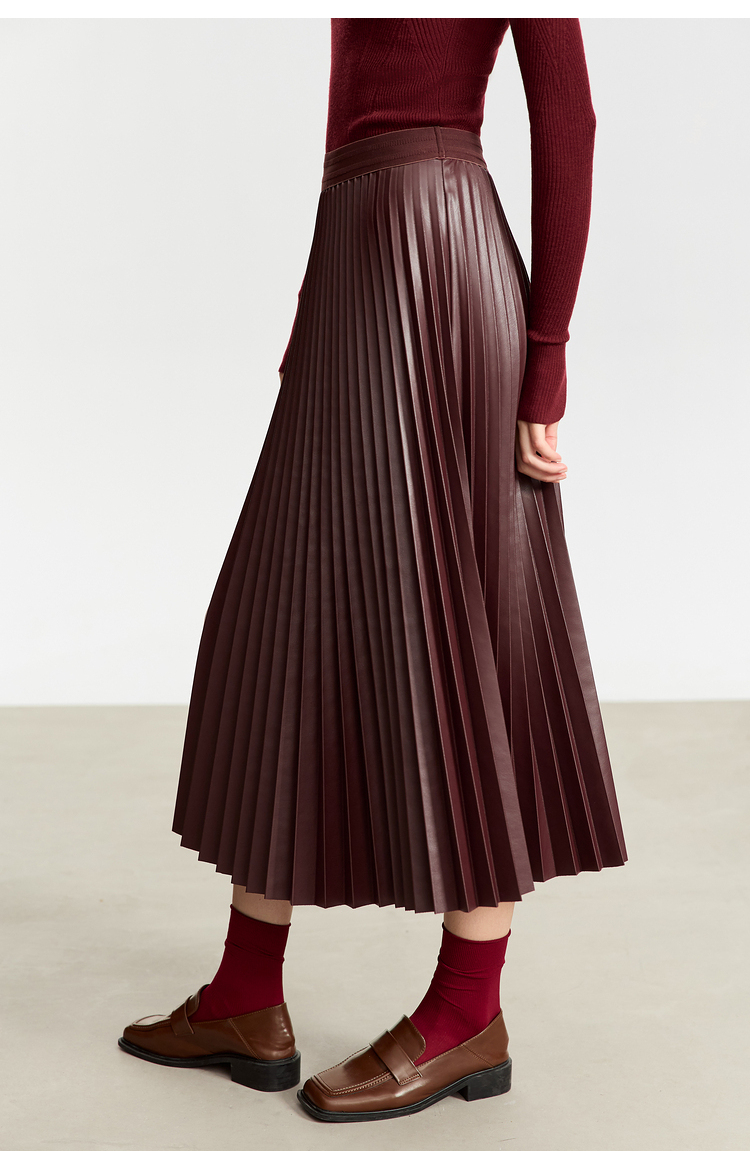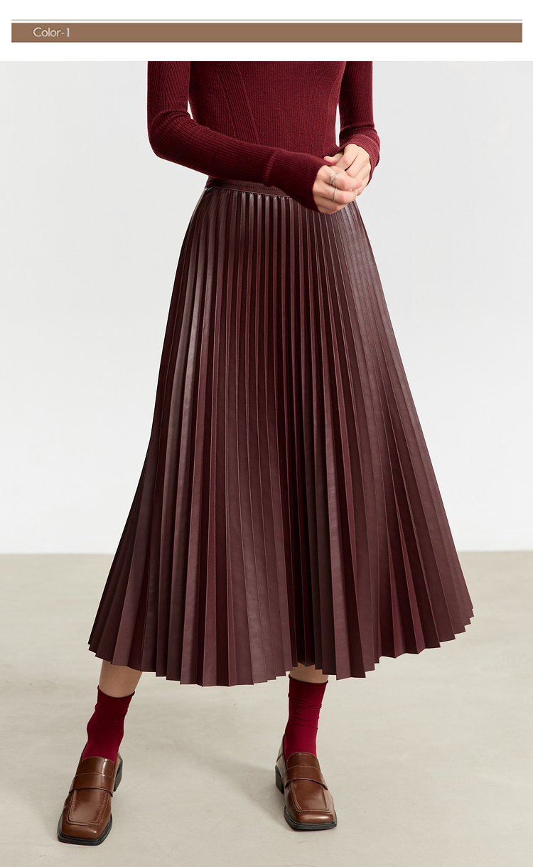 Waistline: NaturalnMaterial: PU LeathernSilhouette: A-line PleatednDresses Length: Mid-CalfnElasticity: Slight StretchnSeason: Winternnn**Elegant Design and Versatility**nThe AMII Minimalist Retro Fashion Women Skirts 2024 Winter New A-line Pleated PU Simple Office Lady Leather Skirt Female 12323021 is a testament to timeless style. Designed with a natural waistline and a slight stretch for comfort, this long pleated skirt is a perfect blend of elegance and practicality. The A-line silhouette flatters various body types, while the pleats add a touch of sophistication to the overall look. The mid-calf length makes it suitable for both casual and professional settings, making it a versatile addition to any wardrobe.nn**Comfort Meets Durability**nCrafted from premium PU leather, this black pleated skirt not only offers a sleek and polished appearance but also ensures durability for the colder months. The leather material provides a slight stretch, allowing for ease of movement while maintaining its shape throughout the day. The 105℃挥发物≤:AMII specification ensures that the skirt meets high-quality standards, making it a reliable choice for the fashion-conscious woman.nn**Perfect for the Modern Woman**nWhether you're heading to the office or stepping out for a casual gathering, this skirt is designed to meet the needs of the modern woman. Its solid pattern and simple yet chic design make it a staple piece that can be easily paired with various tops and accessories. The folds serve as a subtle decoration that adds depth to the skirt's overall look. Although not customizable, the skirt's solid pattern and classic design ensure it remains a timeless addition to any wardrobe.