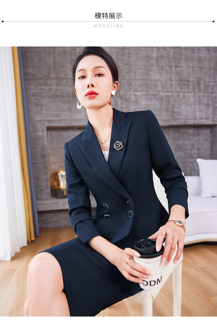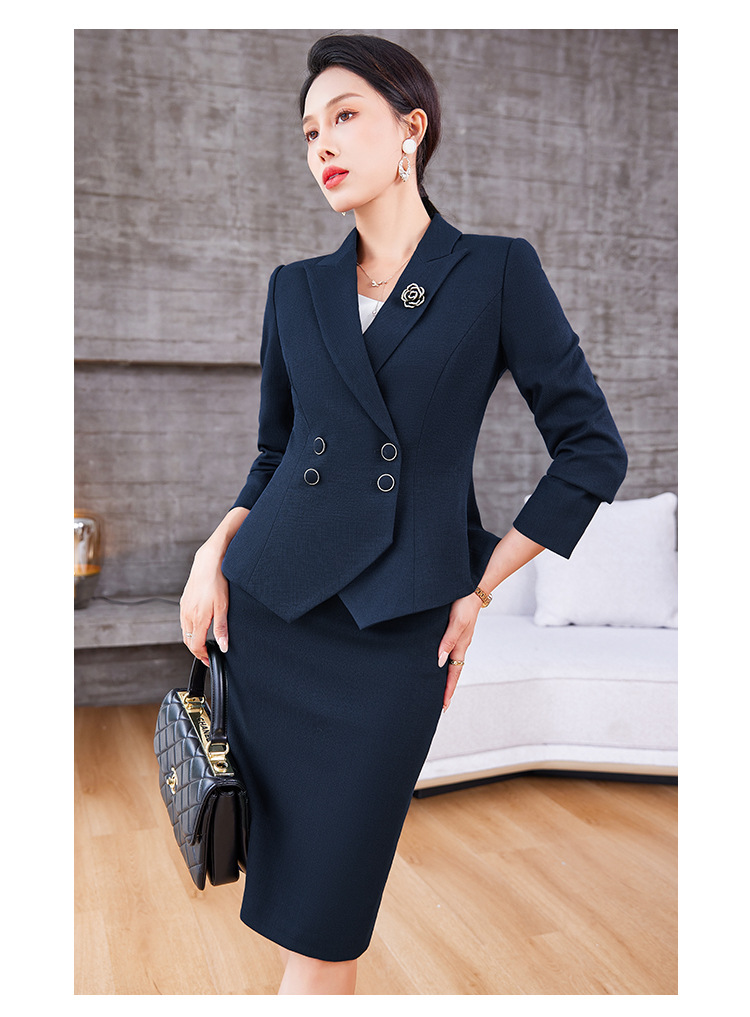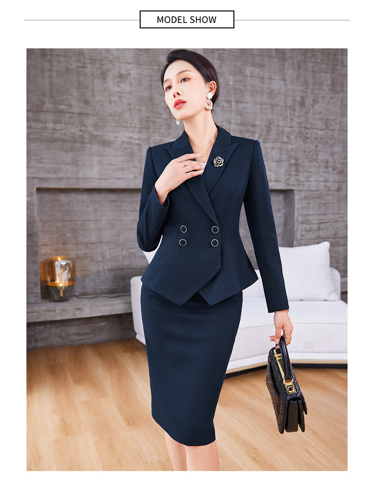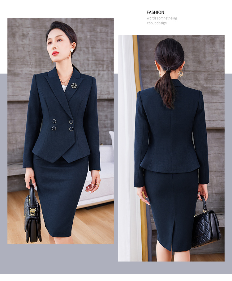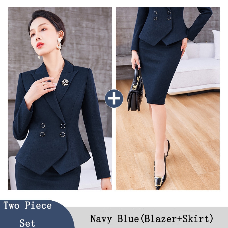 Elevate your professional image with this navy blue skirt suit set, perfect for office lady attire.
