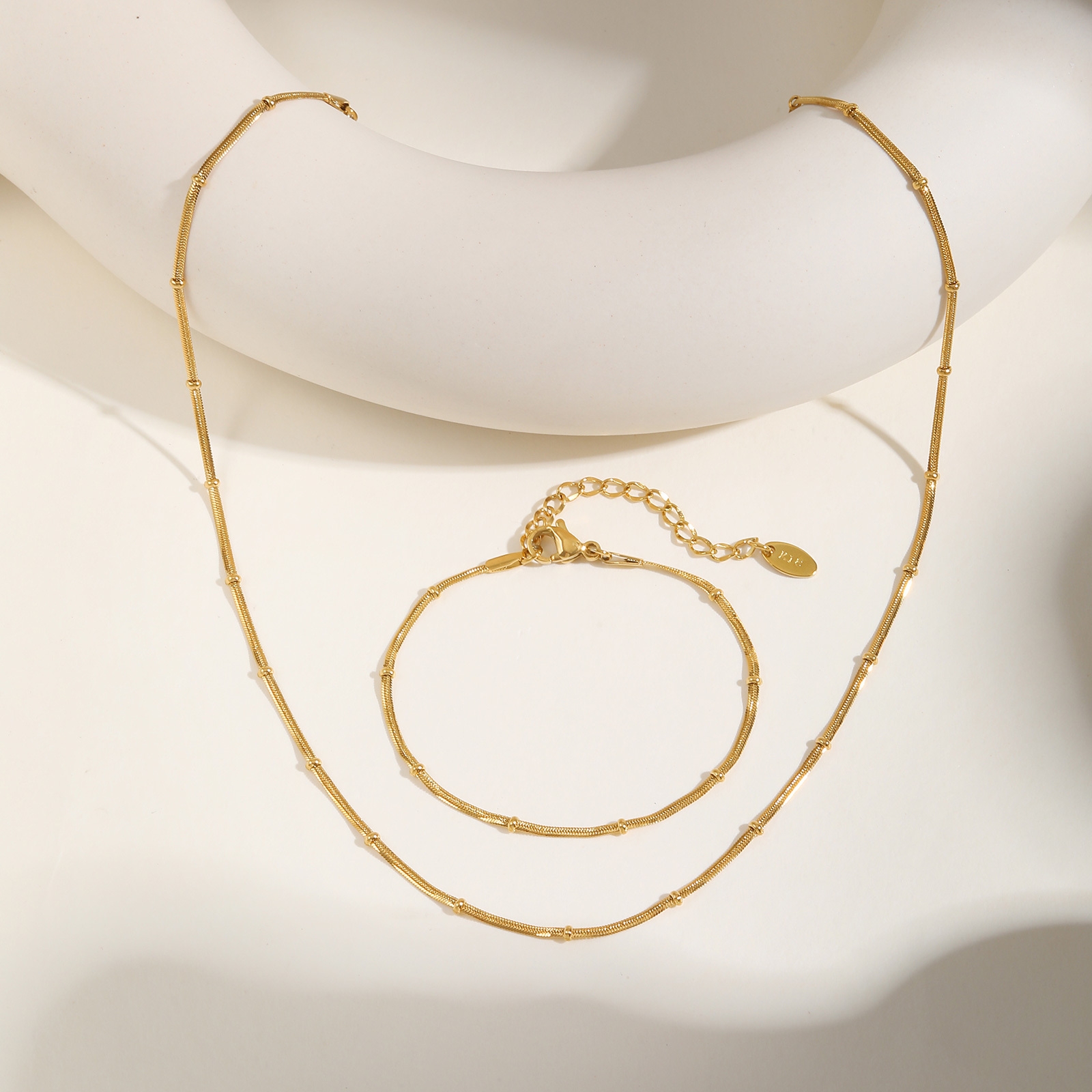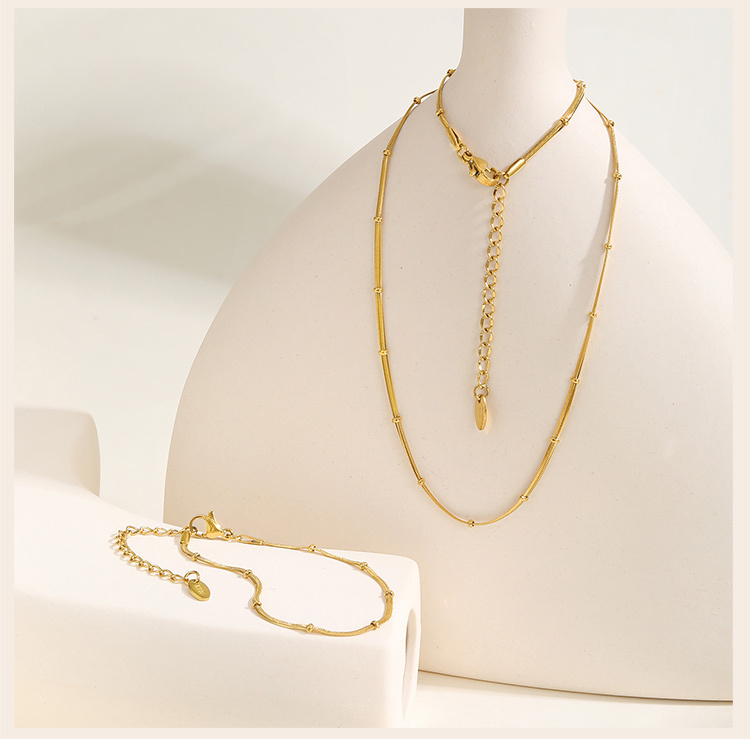Material Feature: Stainless steel, 18k gold plated, silver plated Performance and Property: Vacuum 3-layer plating, waterproof, hypoallergenic Design and Style: Snake Chain with Snake Ball Beads Usage and Purpose: Versatile fashion accessory for women Applicable Environment: Suitable for daily wear, special occasions Compatibility: All Compatible |Gold Snake Bracelet For Women|Gold Snake Bracelet Women| **Elegant Craftsmanship and Timeless Design** The Stainless Steel Snake Ball Bead Chain Bracelet is a testament to the art of fine jewelry craftsmanship. The bracelet features a delicate snake chain design, adorned with snake ball beads that add a touch of elegance and sophistication to any outfit. The bracelet's 18k gold plating gives it a luxurious sheen, while the silver plated option provides a sleek, modern look. The vacuum 3-layer plating process ensures that the bracelet's color remains vibrant and does not fade over time, making it a lasting addition to your jewelry collection. **Versatile and Allergy-Friendly Accessory** Designed with the modern woman in mind, this bracelet is not just a piece of jewelry but a statement of style. It is suitable for various occasions, from casual outings to formal events, and can be worn with a variety of outfits. Its hypoallergenic properties make it a perfect choice for those with sensitive skin, as it is lead-free, nickel-free, and never fades. The bracelet's clasp type, a secure lobster-claw-clasps, ensures that it stays in place, while the round shape and pattern provide a classic, timeless look. **Ideal Gift for Every Occasion** Whether you're looking for a thoughtful gift for a mother, daughter, sister, or friend, this gold snake bracelet is an ideal choice. Its versatility and allergy-friendly nature make it a suitable gift for any occasion, from Christmas to birthdays, anniversaries, or just as a token of appreciation. The bracelet's design is not limited to women; it can also be a stylish accessory for men or unisex wear. Its lightweight and comfortable fit make it a daily wearable piece that can be treasured for years to come.