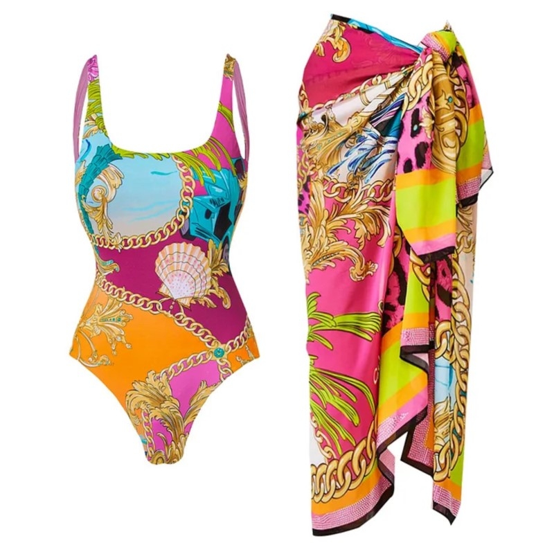 Pattern Type: PrintnAge: Middle AgenFit: True to size, take your normal sizenWith Pad: YesnWaist: High WaistnMaterial: PolyesternSupport Type: Wire FreenGender: WomennOrigin: CN: Guangdongnnn|One Piece Retro Bikini|Retro One Piece Bikini|Retro Bikini One Piece|nn**Elegant Retro Design for the Modern Woman**nnStep into summer with the Retro Bikini Printed Fashion One Piece Swimsuit and Cover Up with Skirt. This chic ensemble combines the timeless allure of retro style with the practicality of a one-piece swimsuit and a luxurious cover-up skirt. The vibrant print captures the essence of summer fun, while the high waist design offers a flattering silhouette that accentuates your figure. The swimsuit's wire-free support ensures comfort, and the inclusion of padding provides the necessary coverage for a confident beach outing.nn**Versatile and Functional for Various Beach Activities**nnWhether you're lounging by the pool or enjoying a day at the beach, this swimsuit and cover-up set is the perfect companion. The polyester material is both durable and lightweight, making it suitable for a variety of beach activities. The skirt cover-up adds a touch of elegance, allowing you to transition from the pool to a casual lunch with ease. The high waist design provides a secure fit, minimizing the risk of slippage or discomfort during water activities.nn**Tailored for the Middle-Aged Woman**nnDesigned with the middle-aged woman in mind, this swimwear set offers both style and comfort. The high waist design is flattering and supports the figure, while the true-to-size fit ensures a customized fit for your body type. The inclusion of padding and the wire-free support make this swimwear an ideal choice for those seeking comfort without compromising on style. The sexy girl pattern type adds a touch of playfulness to the ensemble, making it a standout piece in your summer wardrobe.