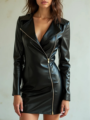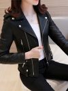 2 reviews for PU Leather Jacket 2025 New Women’s Autumn/Winter Solid Color Jacket Fashion Lapel Collar Two Button Pearl Decor Jacket Coat