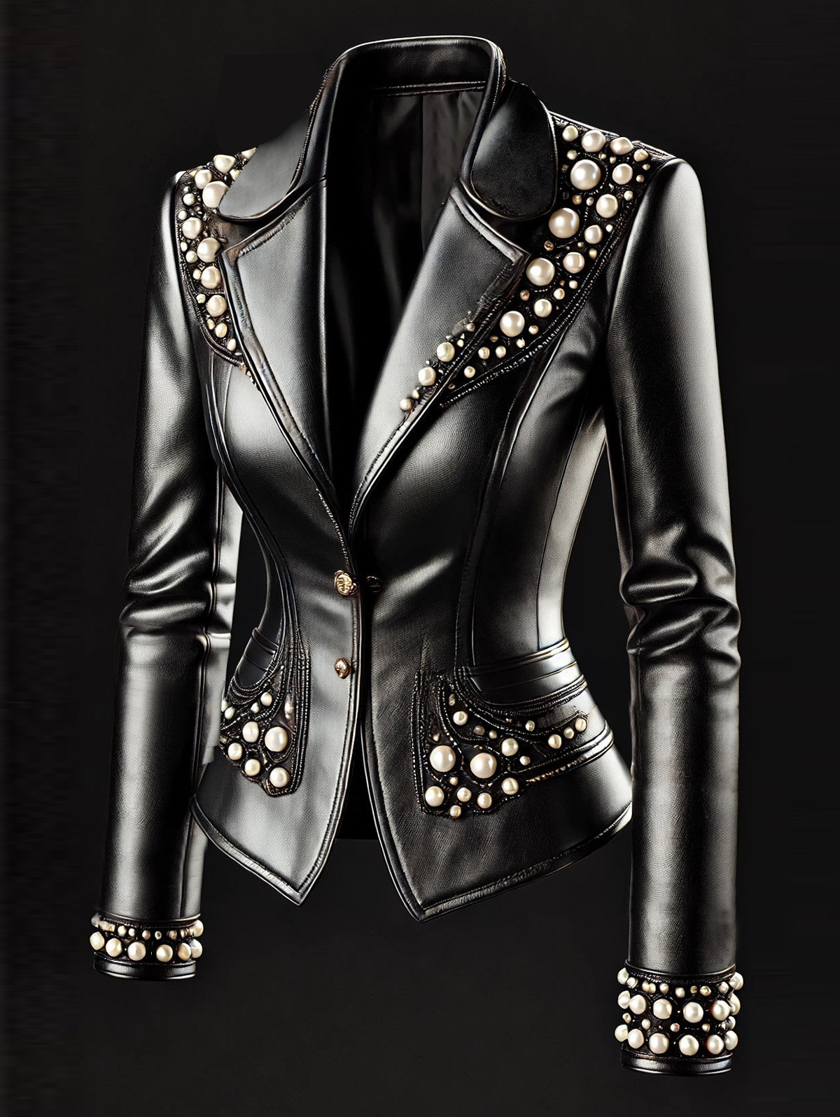 PU Leather Jacket 2025 New Women’s Autumn/Winter Solid Color Jacket Fashion Lapel Collar Two Button Pearl Decor Jacket Coat