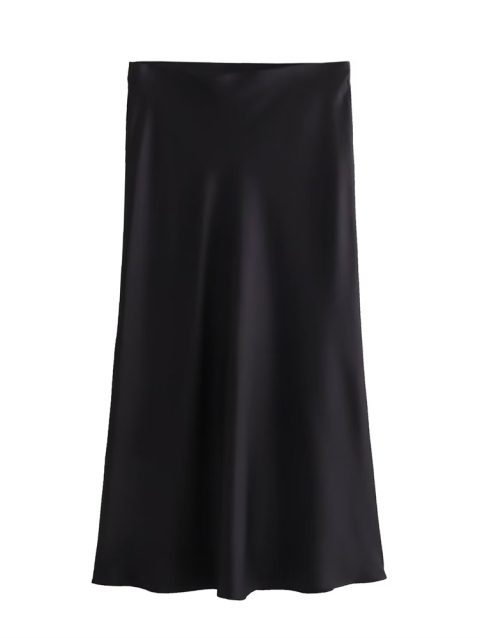 UNIZERA2024 summer new casual women’s clothing simple and fashionable high waisted slim fit silk satin texture MIDI skirt