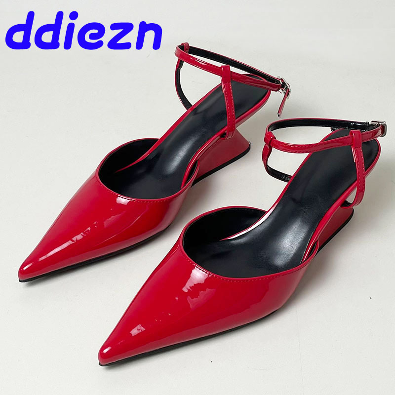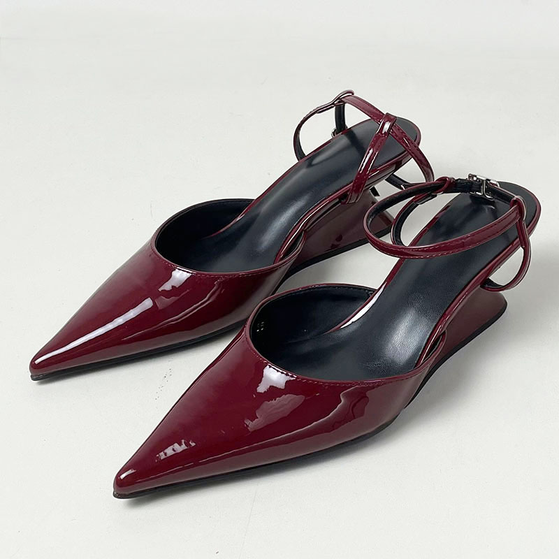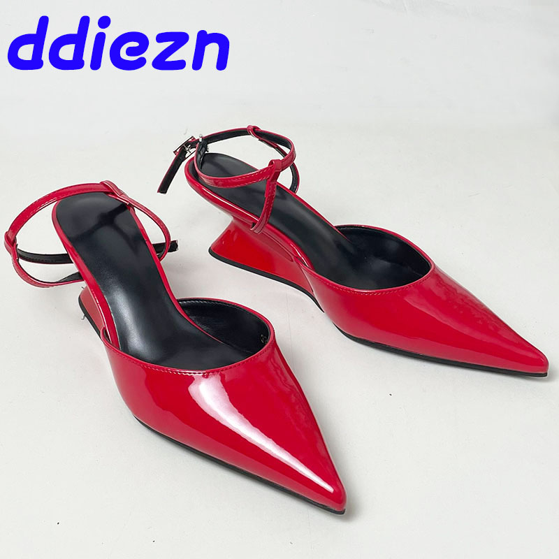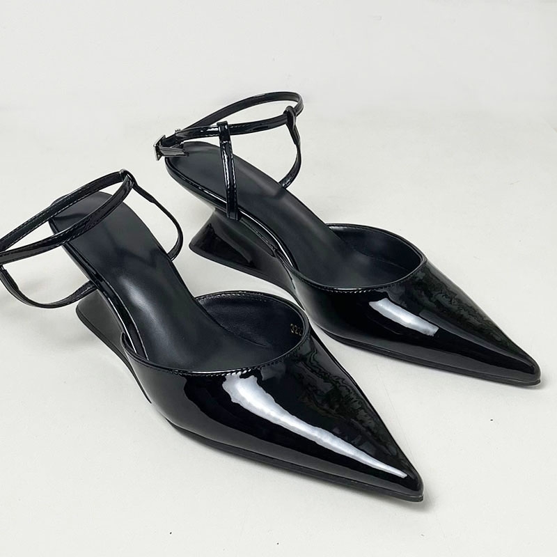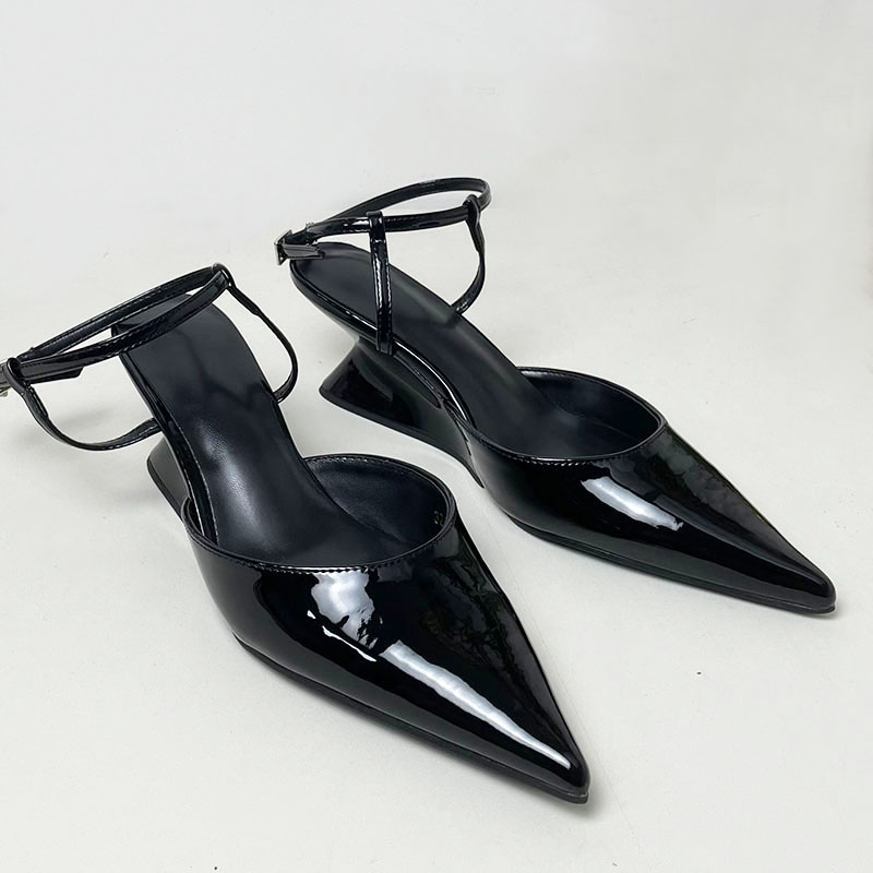 Pumps Designer Shallow Women Wedges Shoes Fashion Ankle Buckle Female Pointed Toe Footwear Ladies Wedges Shoes Heeled Sandals