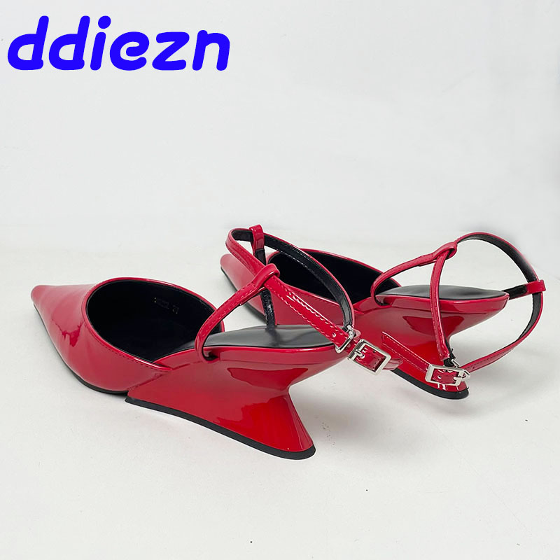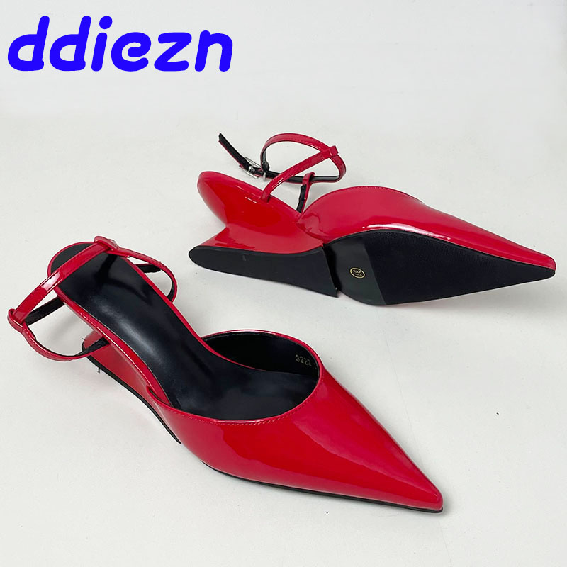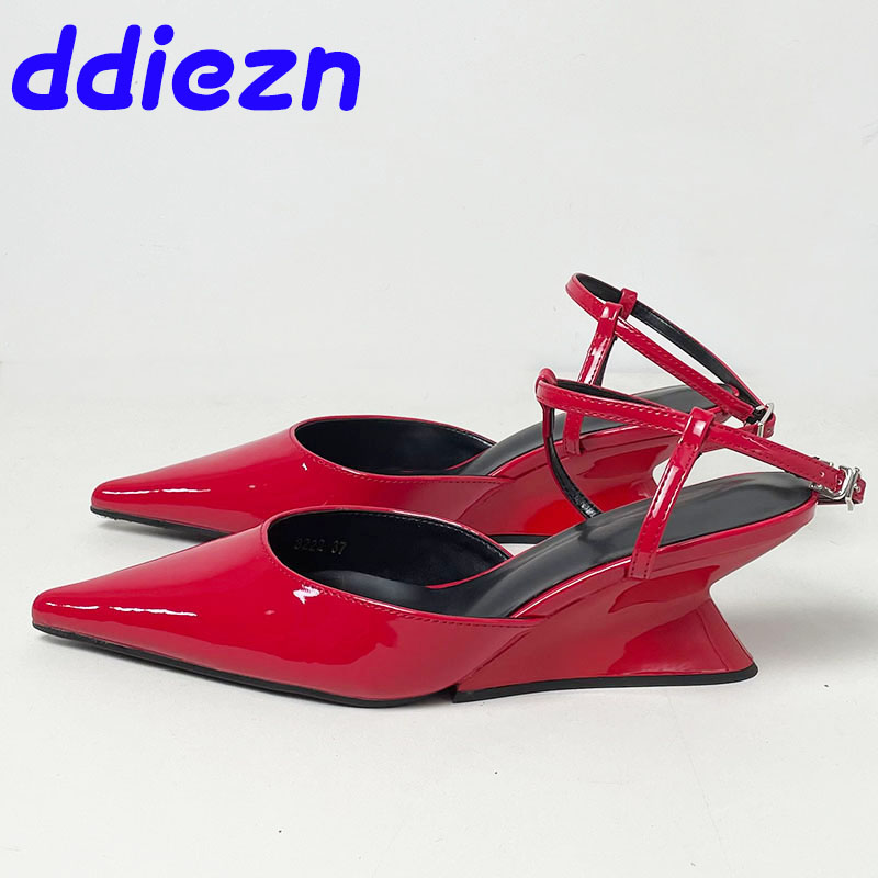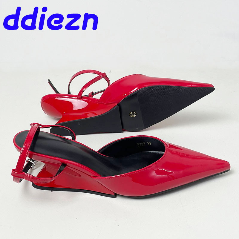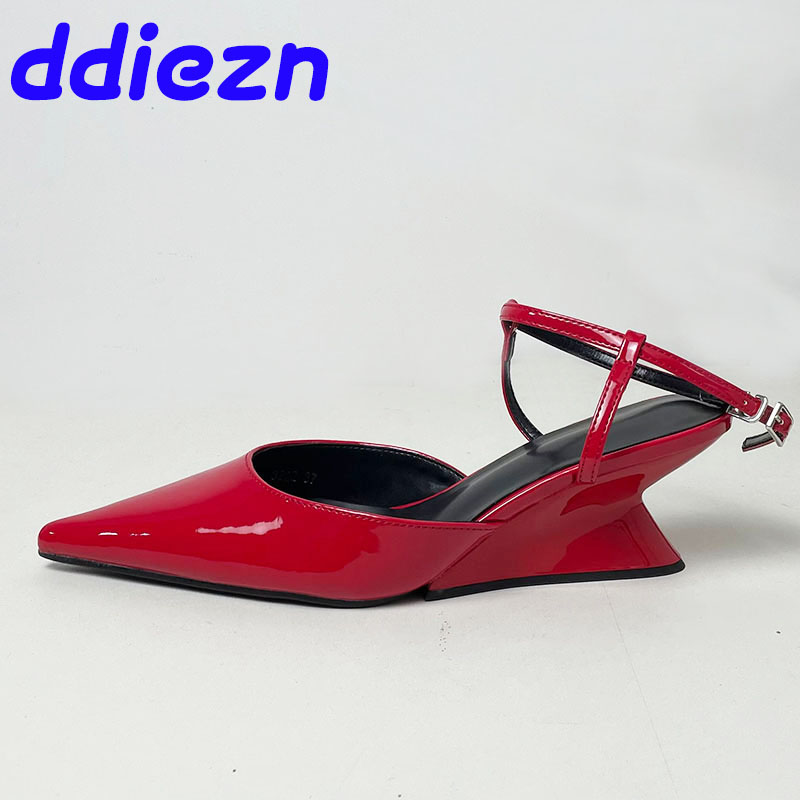 Pumps Designer Shallow Women Wedges Shoes Fashion Ankle Buckle Female Pointed Toe Footwear Ladies Wedges Shoes Heeled Sandals