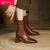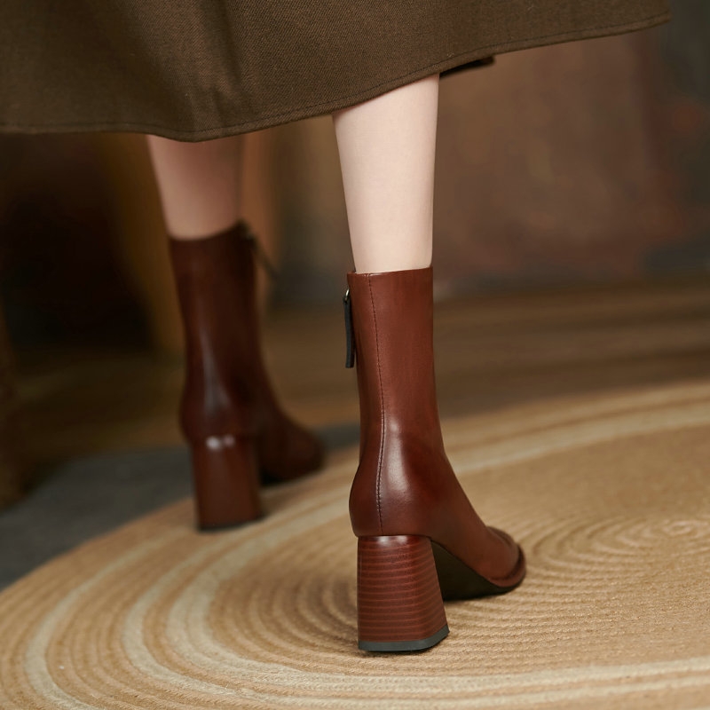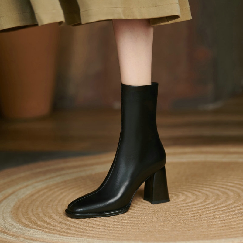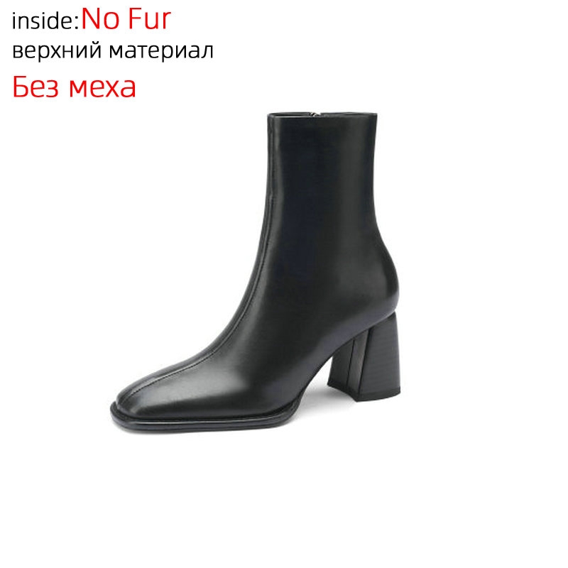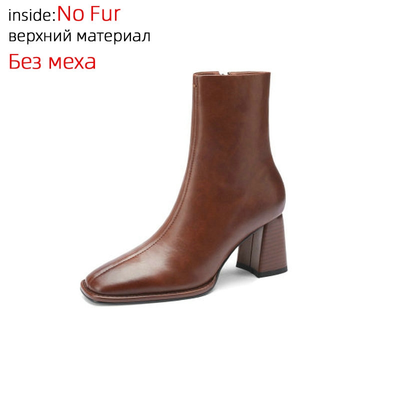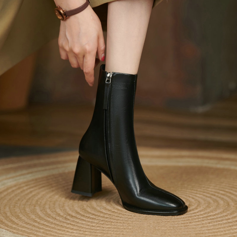 QUTAA 2022 Round Toe Autumn Winter Ankle Boots Cow Leather Zipper Fashion Women Shoes Square Heel Motorcycle Boots Size 34-42