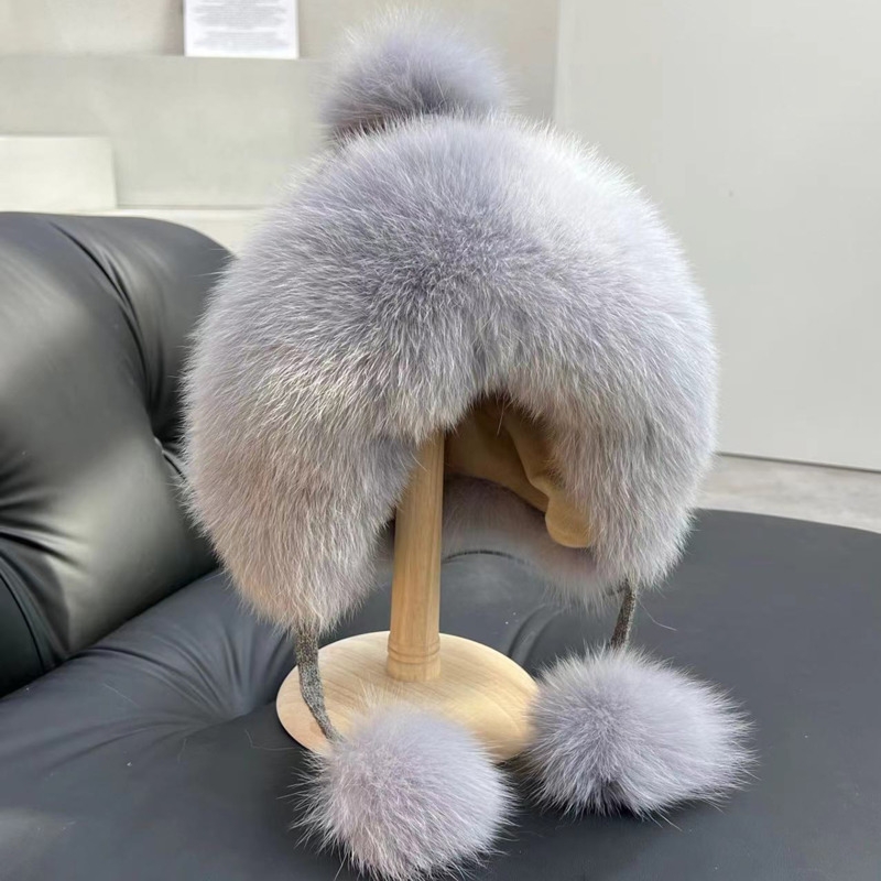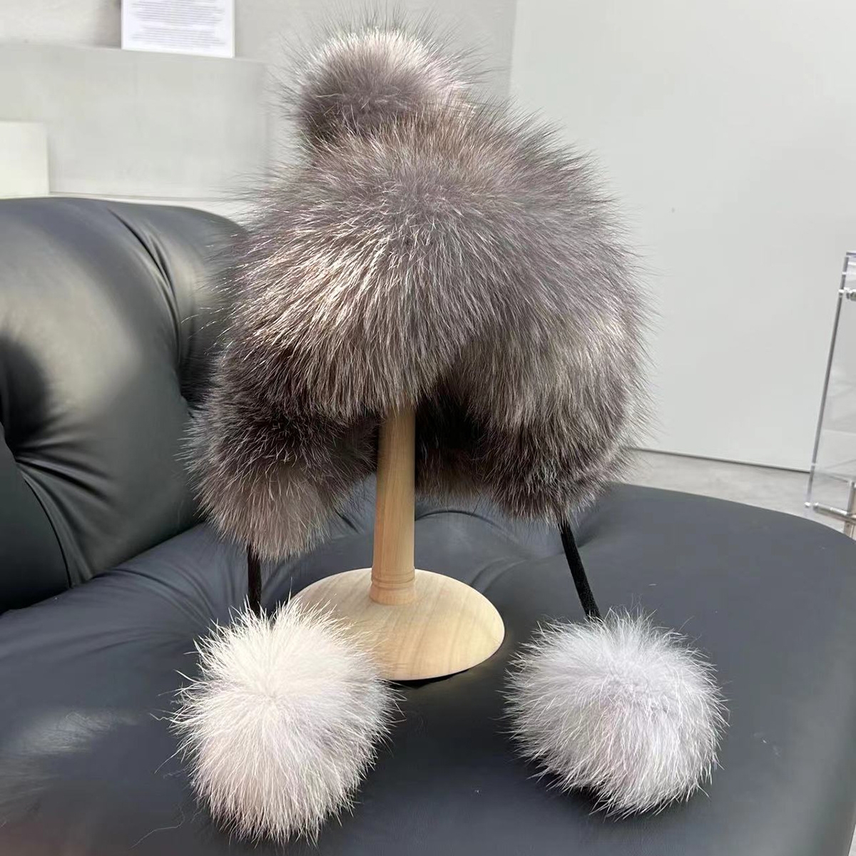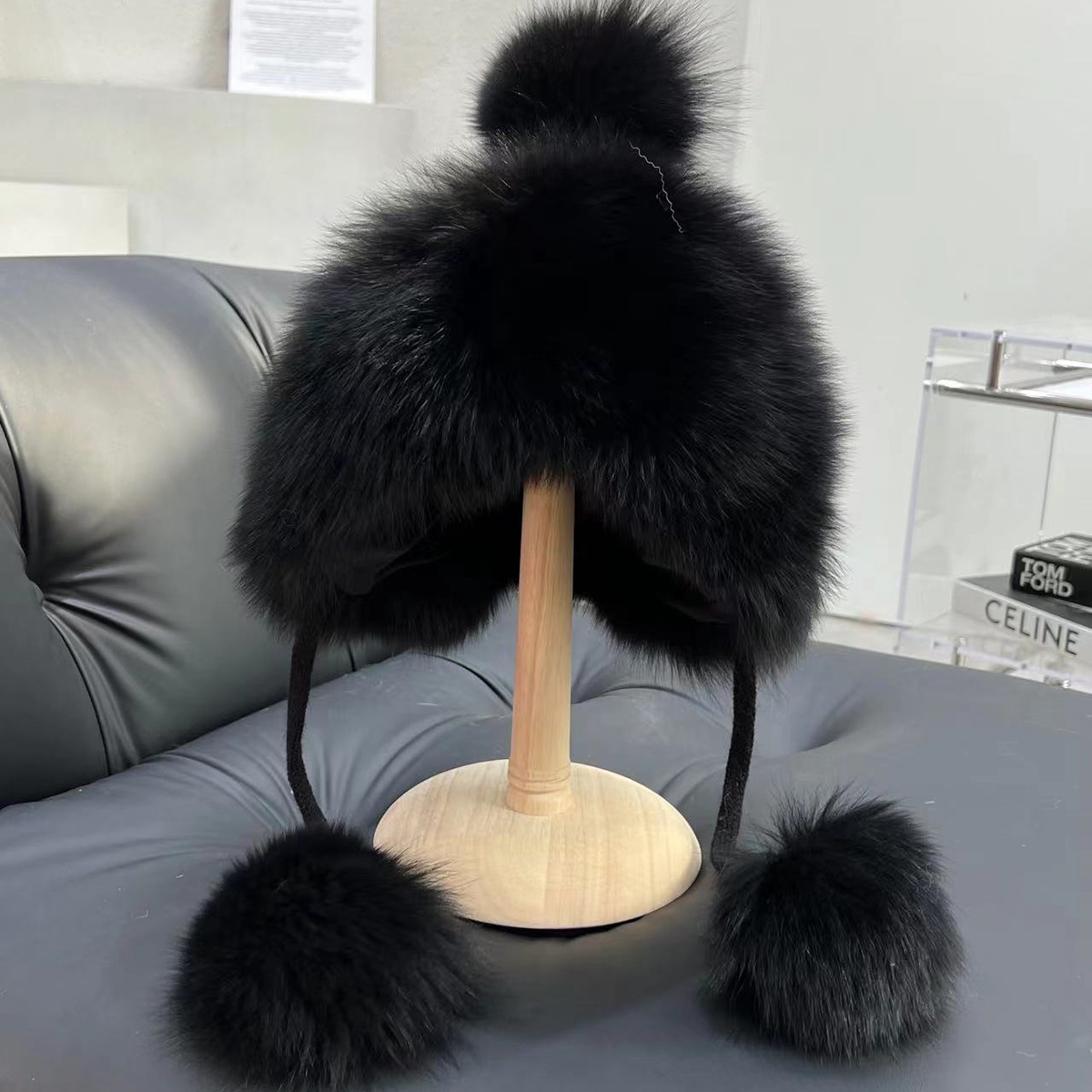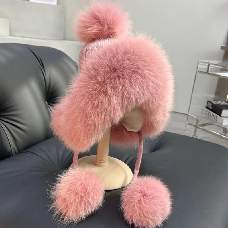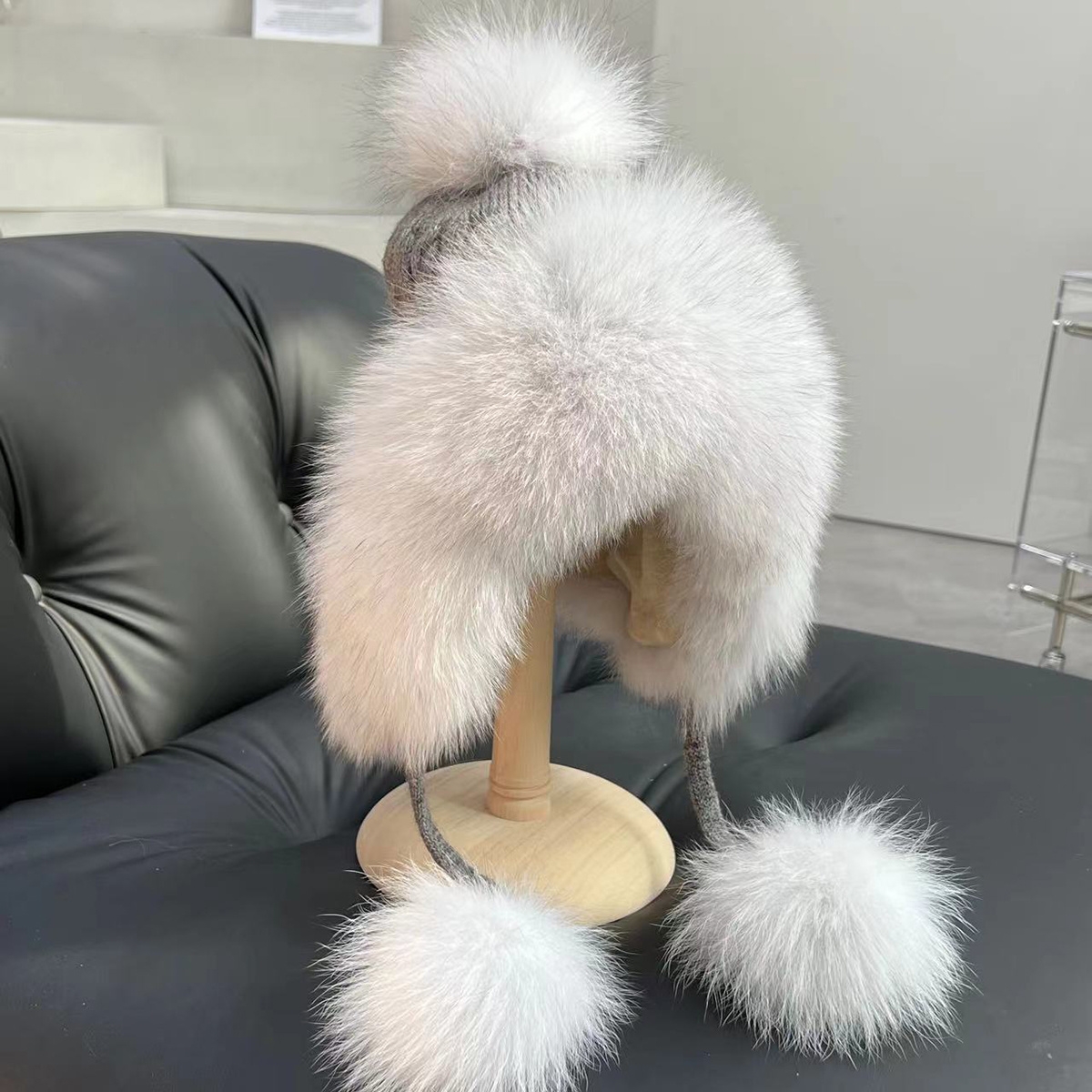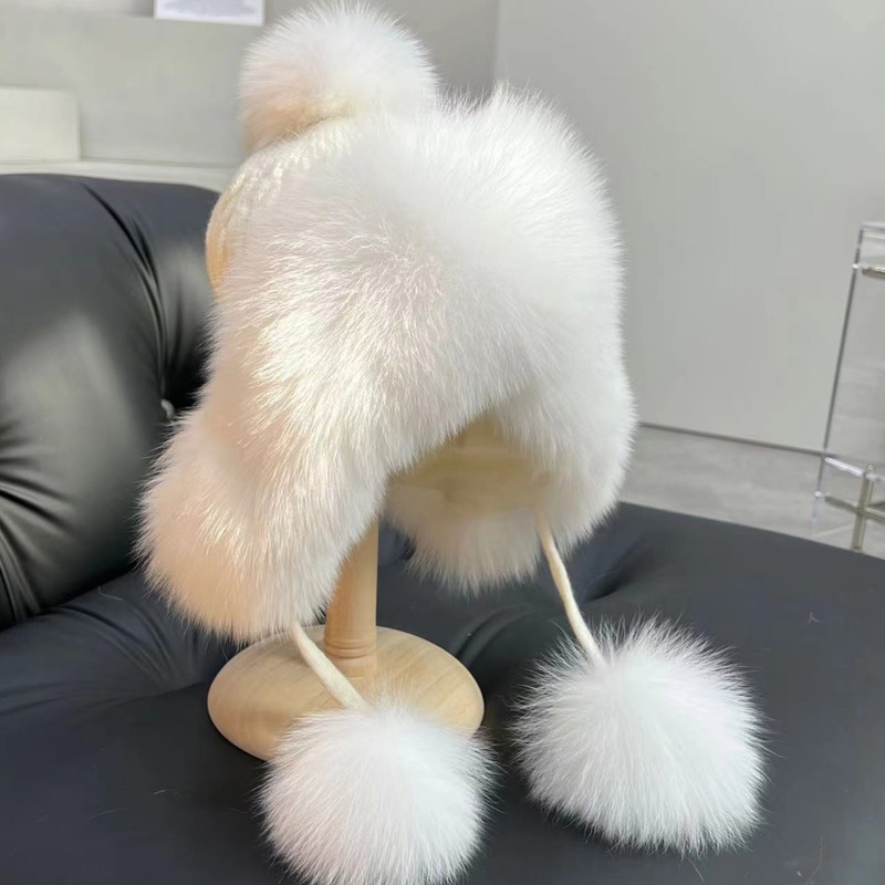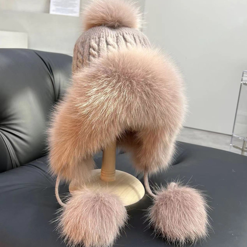 Real Fox Fur Hat Women Winter Snow Cap With Fur Ball Outdoor Skiing Hat Luxury Natural Fur Knitted Caps With Ear Protection