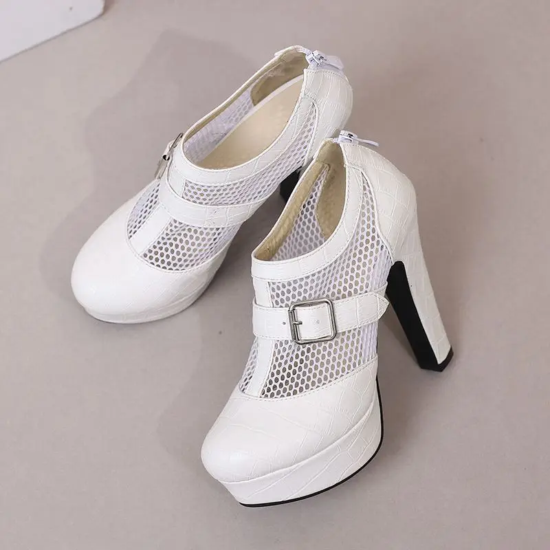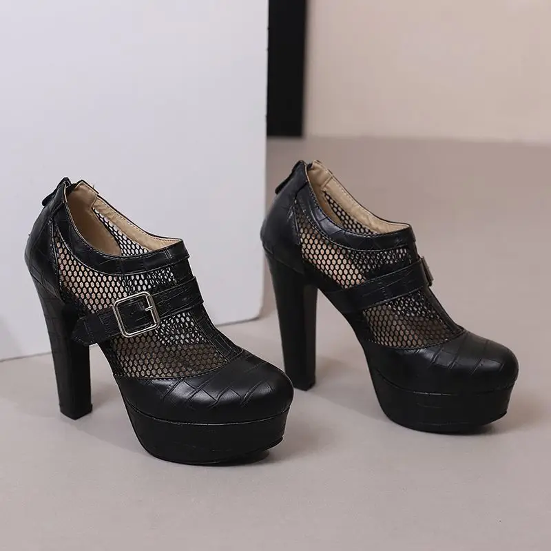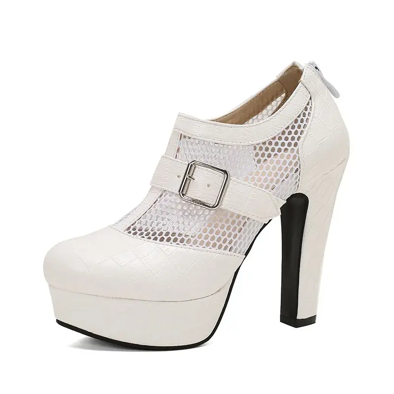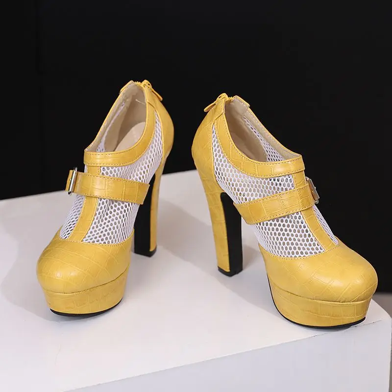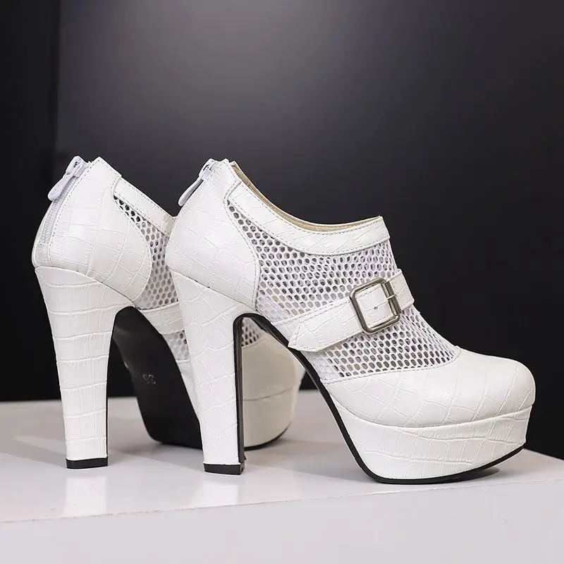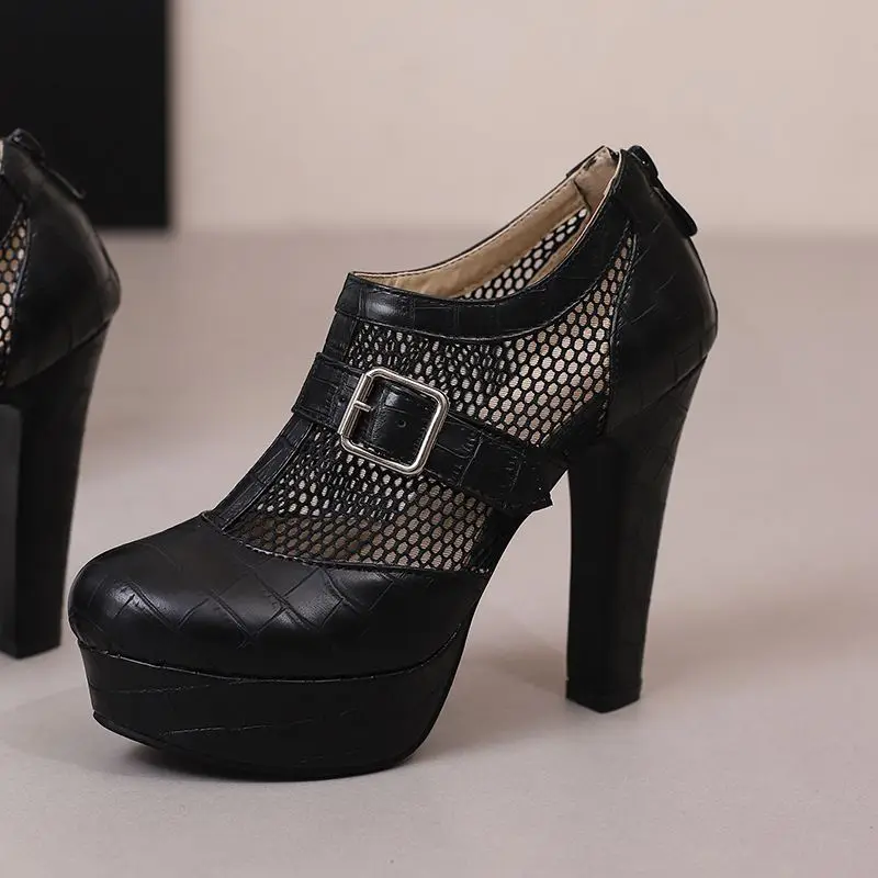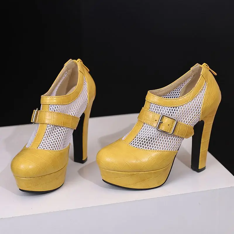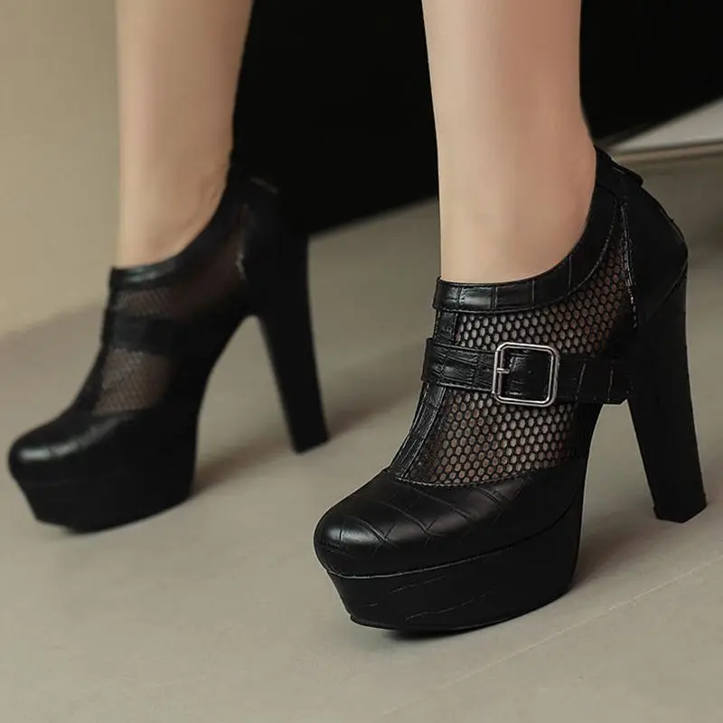 REAVE CAT Brand Women Pumps Buckles High Heels 11.5cm Platform 2.5cm Breathable Mesh 49 50 Sexy Dating Shoes