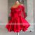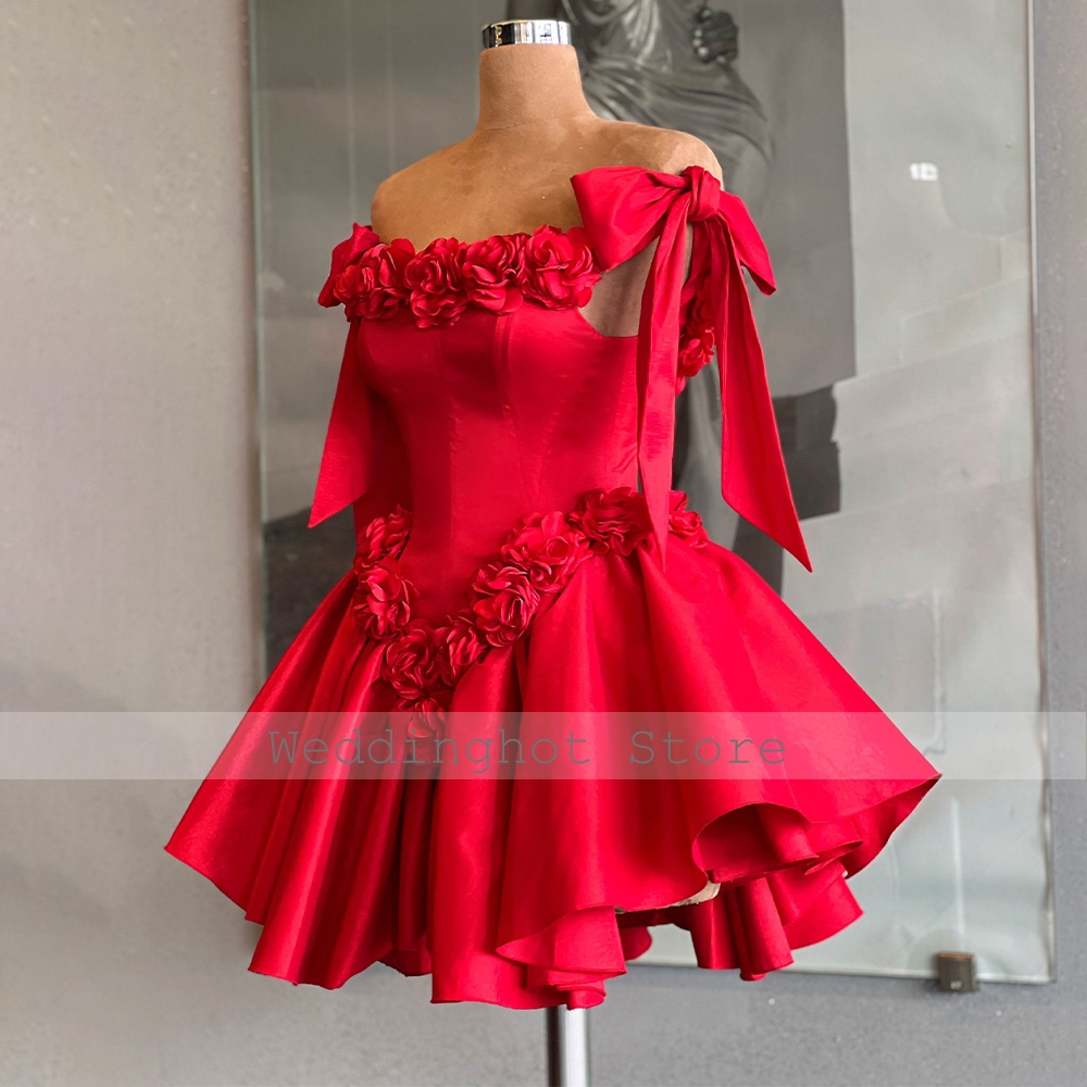 Red Cocktail Dresses Mini 3D Flowers Off the Shoulder Short Evening Party Gown for Woman Ruched Backless Lace Up Homecoming Gown