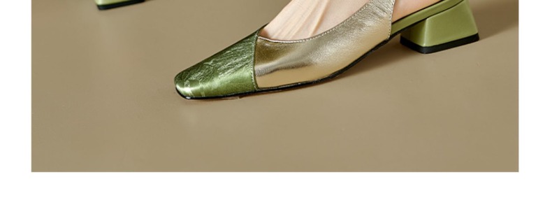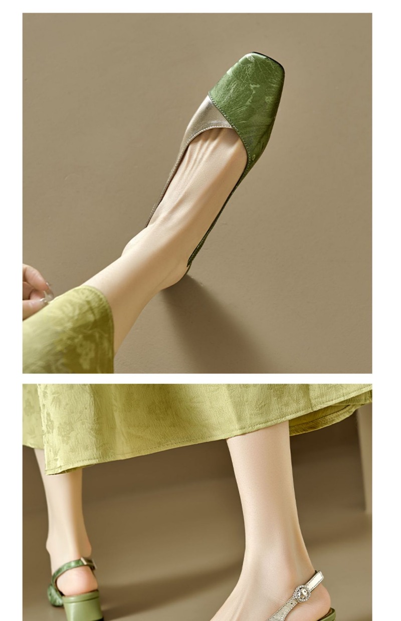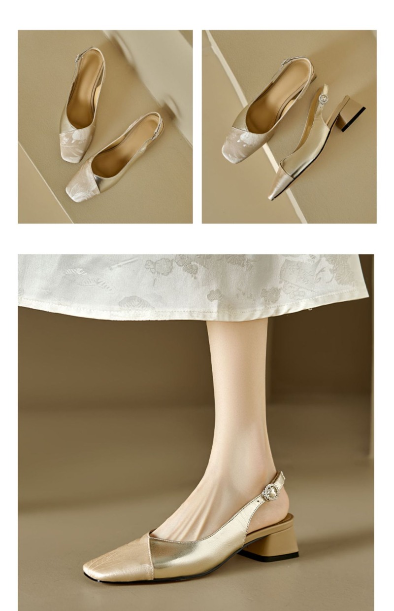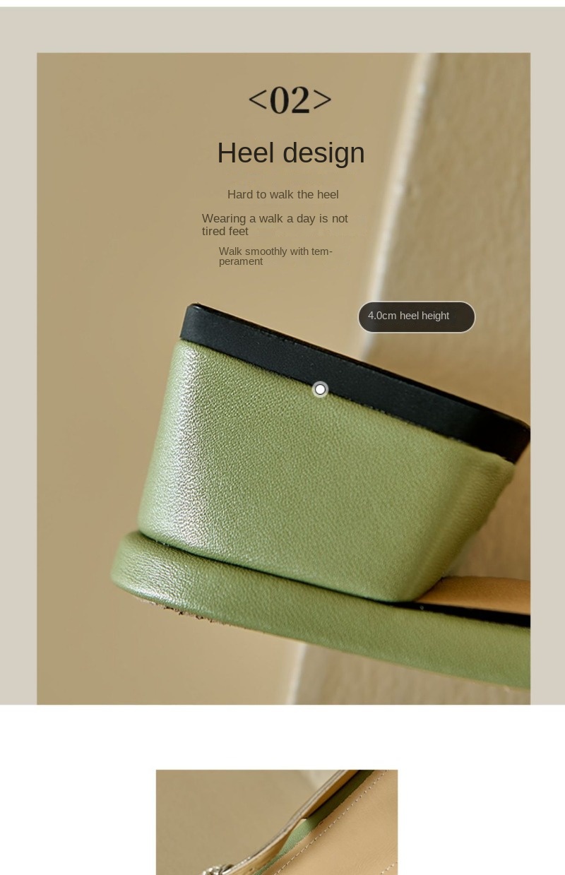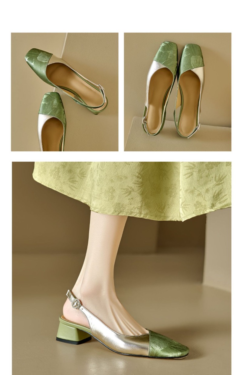 Retro Baotou Slingback Sandals for Women’s Summer New Square Headed Colors Leather Pacthwork Buckle Strap Middle Thick Heel Shoe
