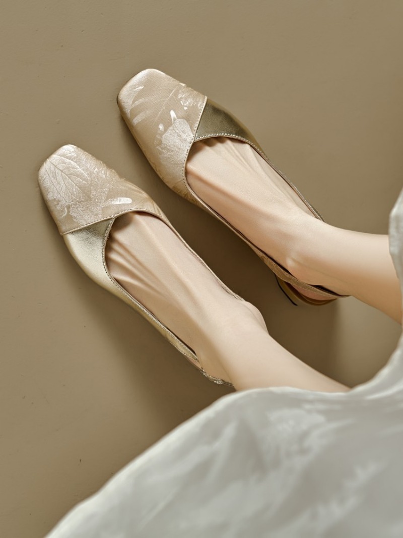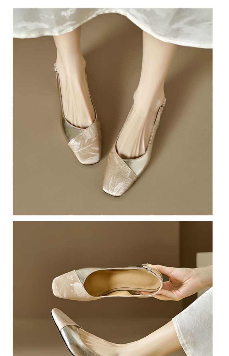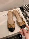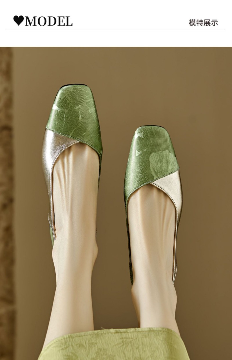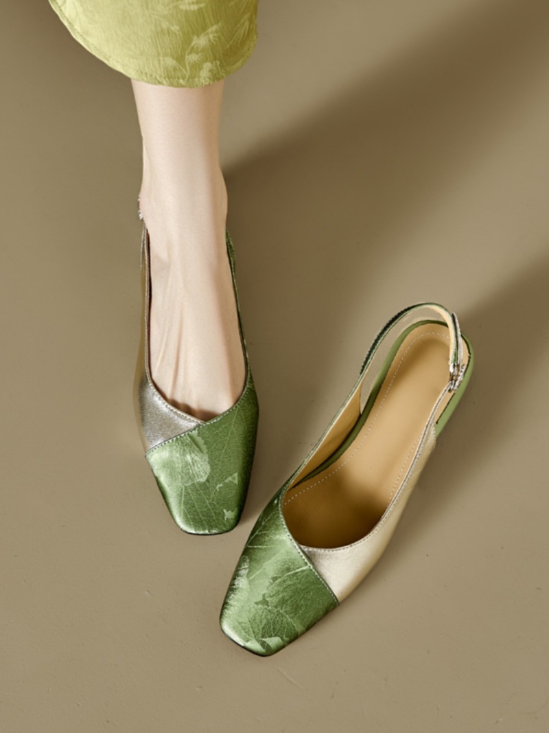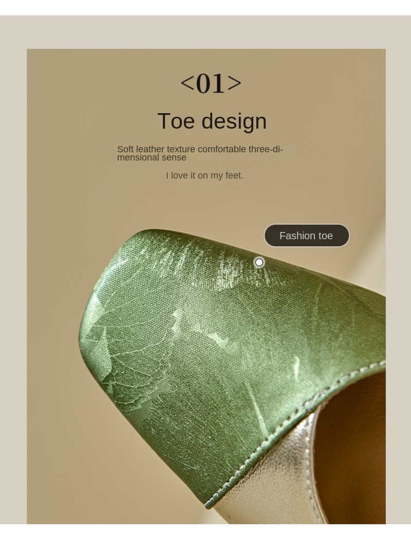 Retro Baotou Slingback Sandals for Women’s Summer New Square Headed Colors Leather Pacthwork Buckle Strap Middle Thick Heel Shoe