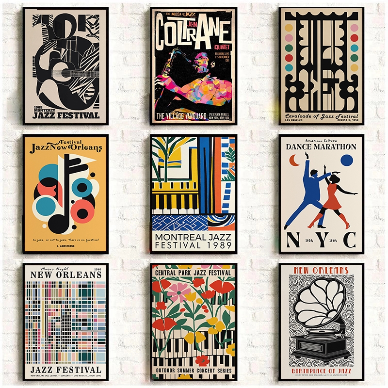 Retro Montreal New Orleans Jazz Festival Music Collection Poster Canvas Painting Wall Art Pictures Home Club Pub Decor Gift