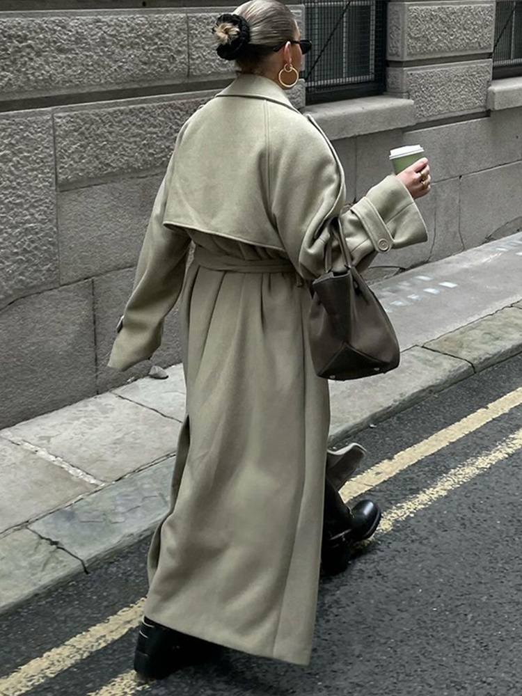 Retro Single-Breasted Lapel Long Coats Women Casual Loose Solid Woolen Coat With Belt Pockets Female Winter Chic Street Outwear