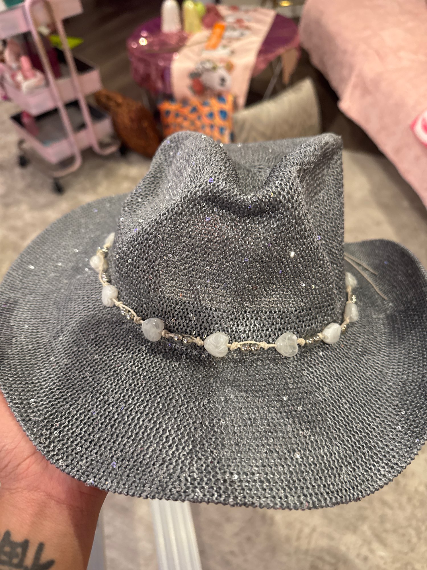 It’s definitely not a rhinestone hat. It just silver and has a little bit of tinsel to make it look like rhinestone.