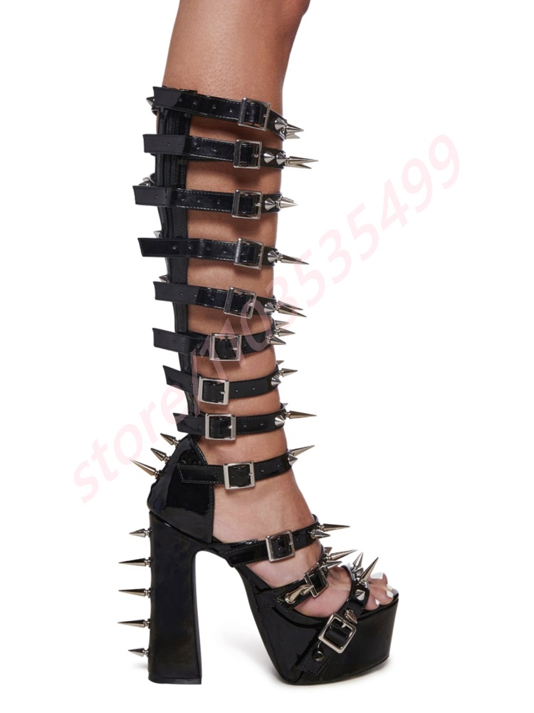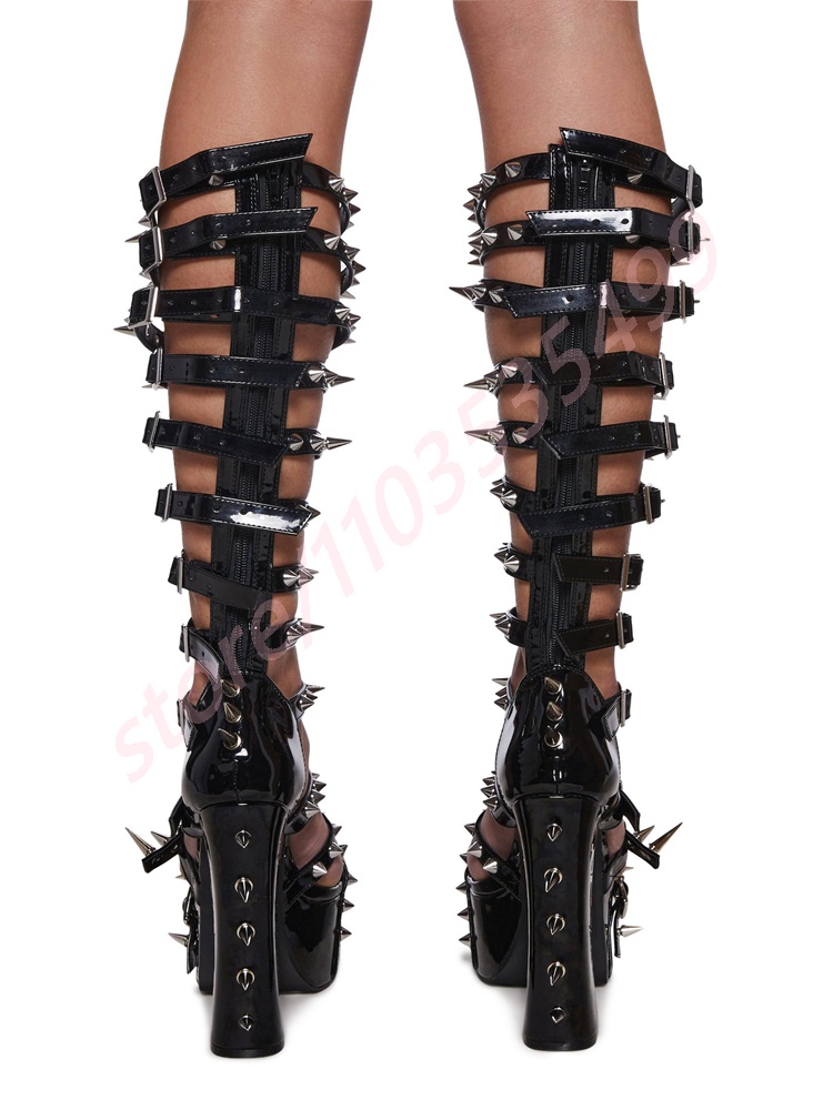 Product Name:Rivet Belt Buckle Sexy Ladies Boots 2025 Summer New Platform Open Thick Heel Hollow Catwalk Sandals Fashion Party Casual Boots