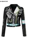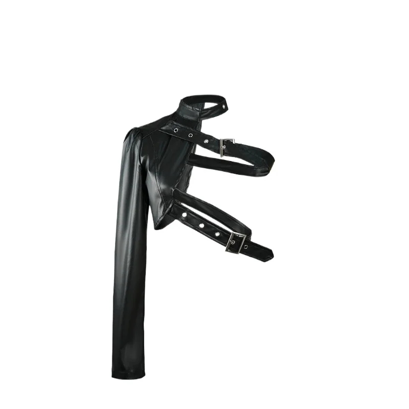 Rock Dance Versatile Irregular European and American Independent Station Street Hipster Black Punk Shoulder PU Leather Jacket