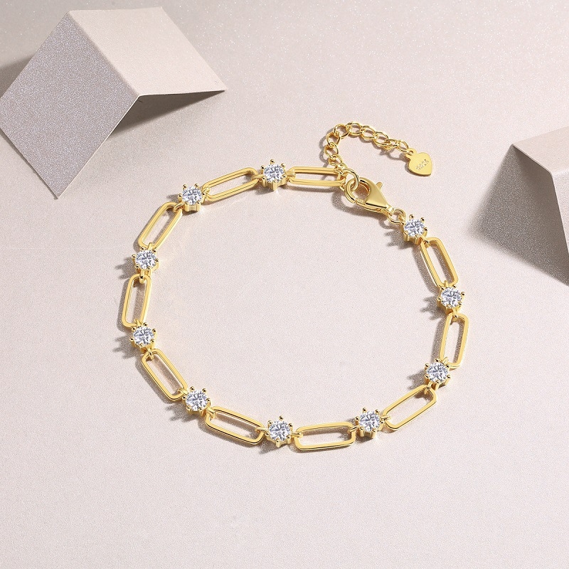 S925 Silver 4mm Moissanite Yellow Gold Chain Woman charm Bracelet Party Gift