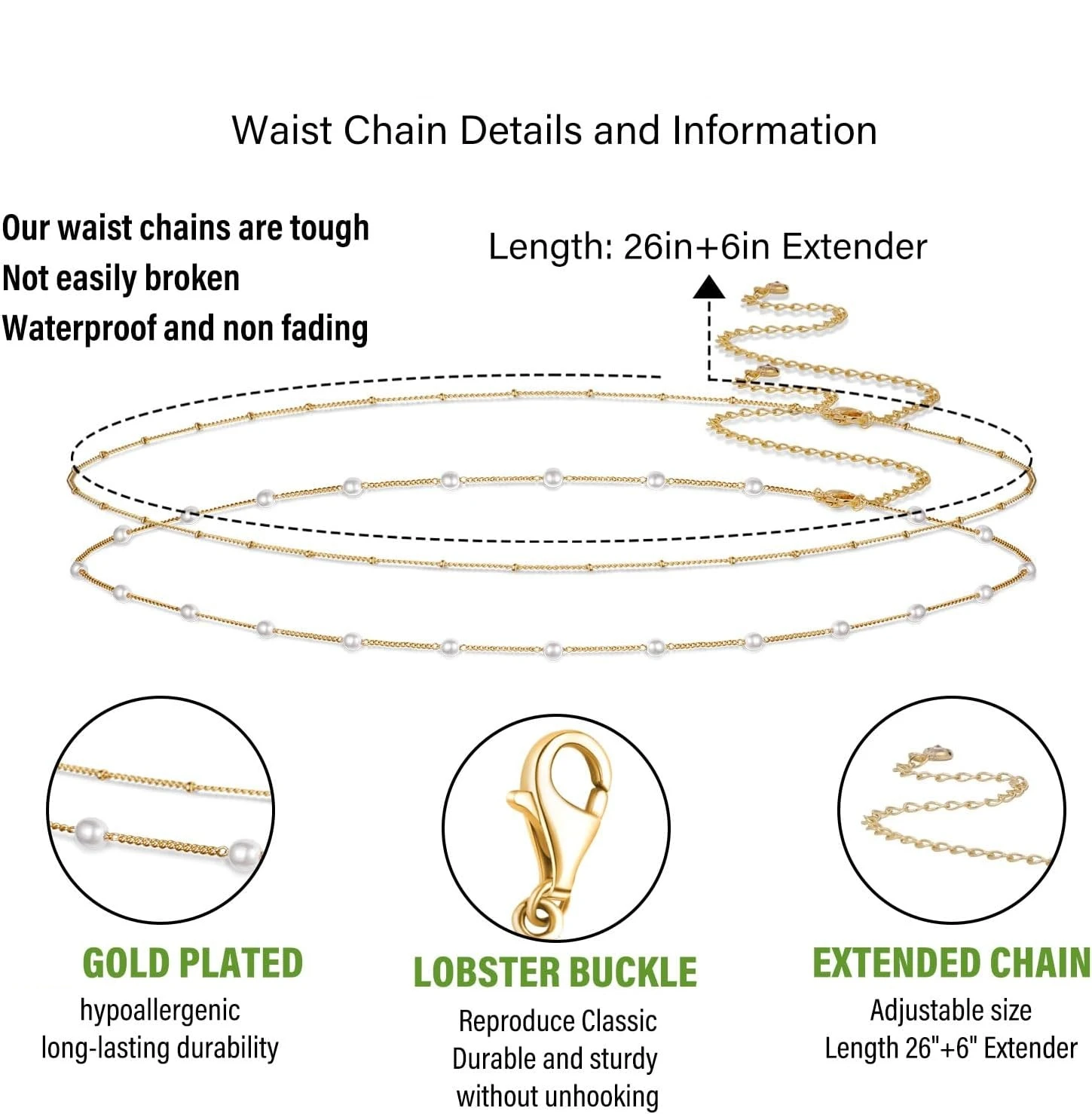 Sexy Accessories for Women Gold Plated Body Chains Dainty Boho Layered Beach Waist Chain Adjustable Bikini Belly Chain Jewelry