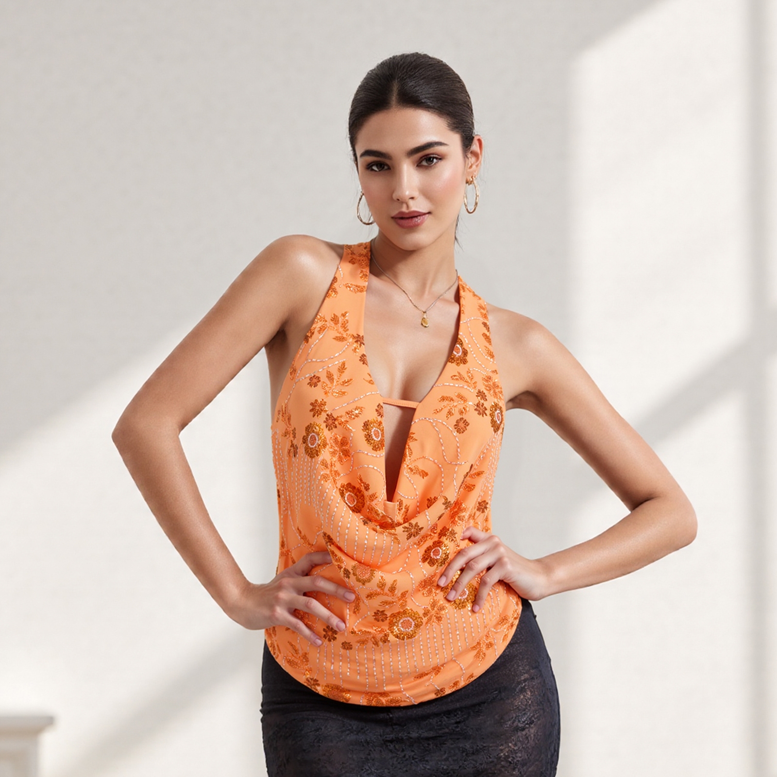 2 reviews for Sexy Deep V Neck Beach Tank Tops Women y2k Coquette Summer Sequins Patchwork Sleeveless Vest Vacation Backless Beach Tops