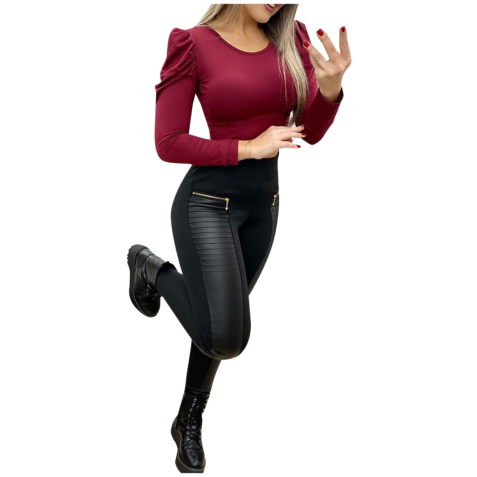 Sexy Fashion Women’S Faux Leather Pants Contrast Zipper Design High Waist Skinny Trousers High Waist Skinny Push Up Leggings
