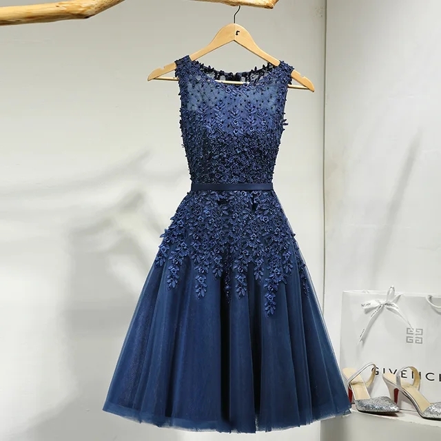 2 reviews for Sexy Illusion Lace Appliques Homecoming Dresses Elegant Cocktail Party Dresses With Pearls Short Evening Gowns Robe De Soiree