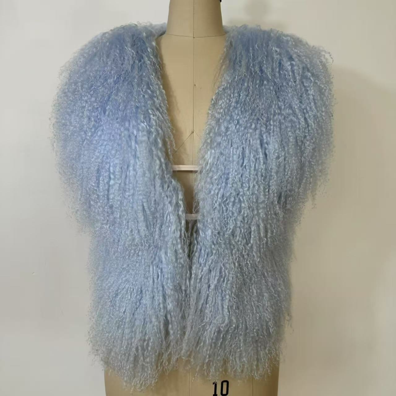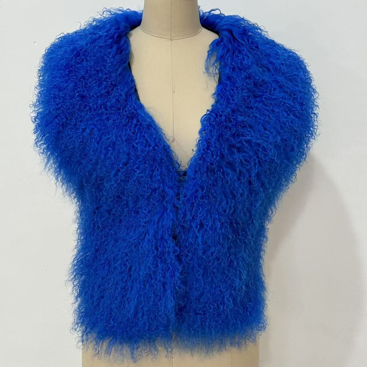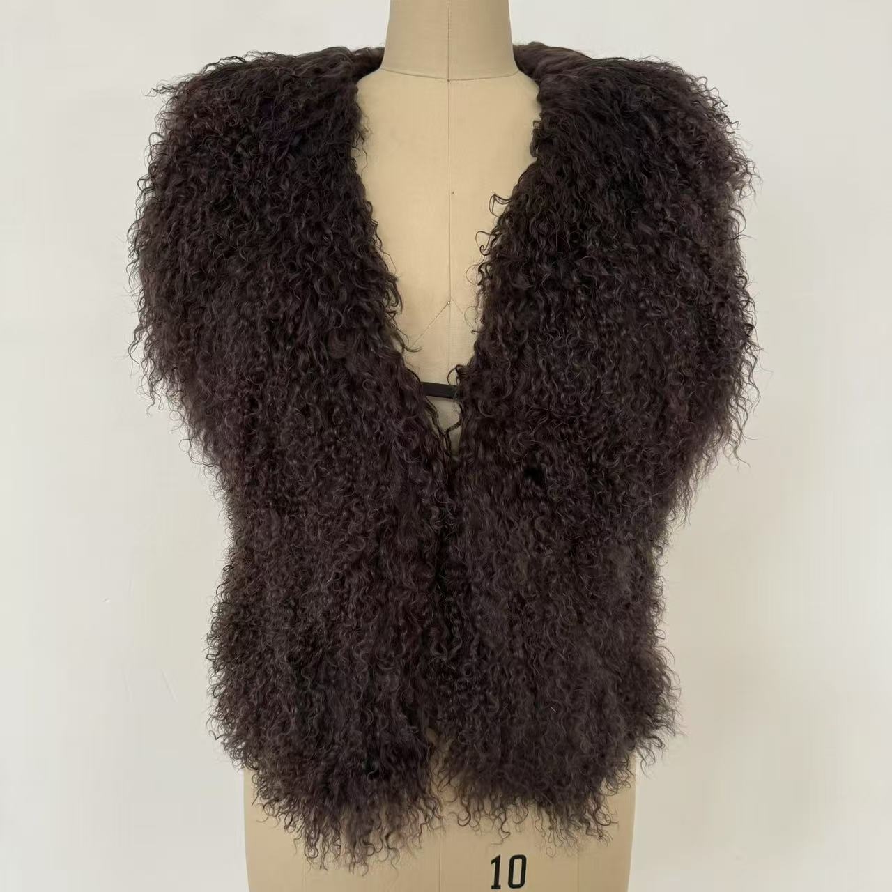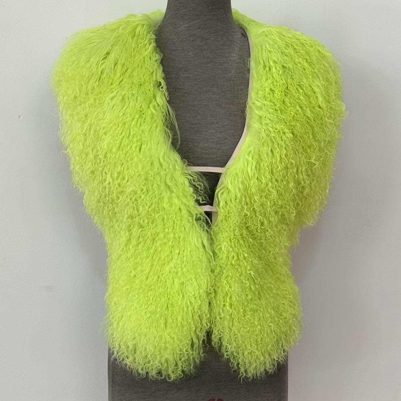 Sexy Mongolian Fur Backless Lacing Vest Waistcoat Woman Fluffy Halter Crop Top High Street Nightclub Cardigan Outfits