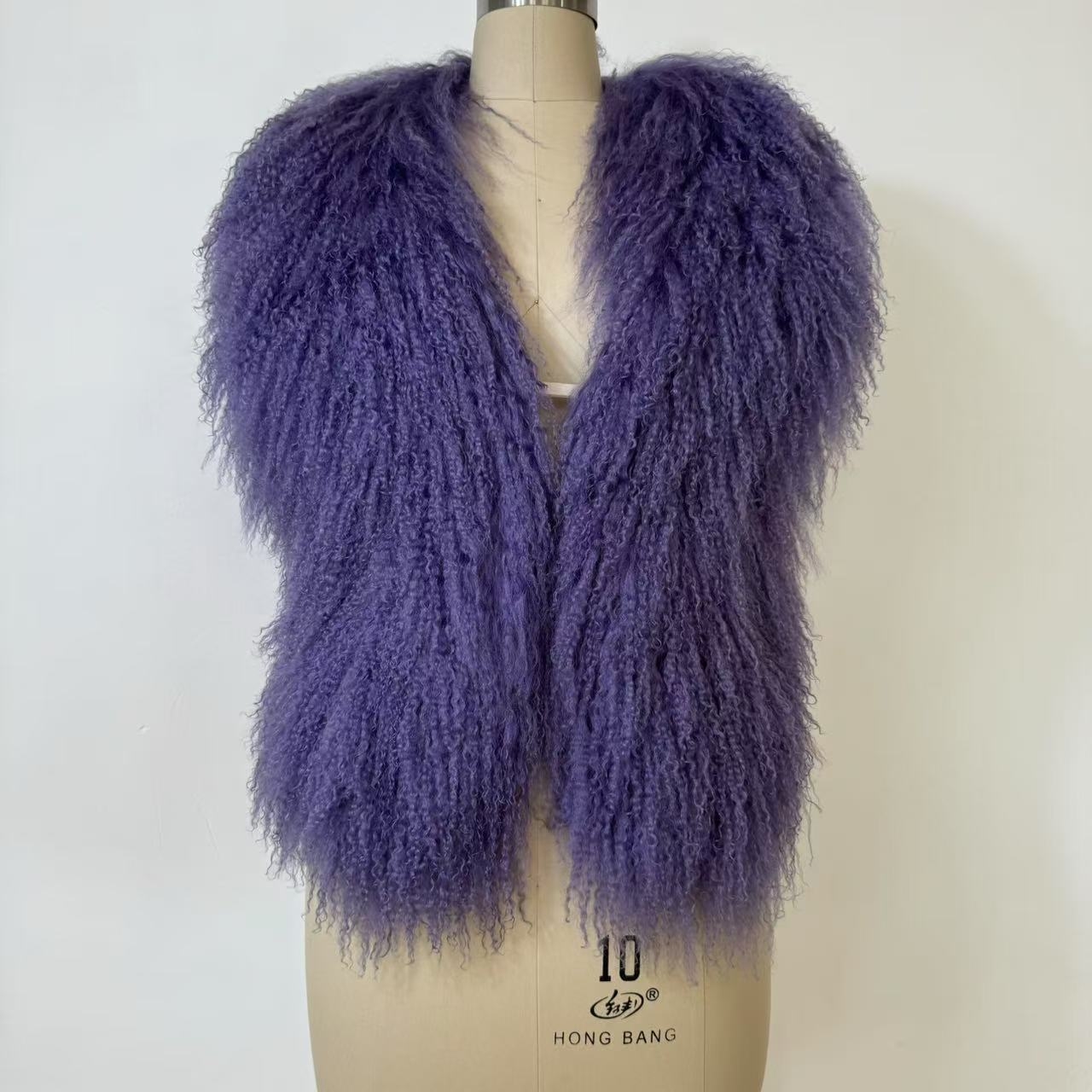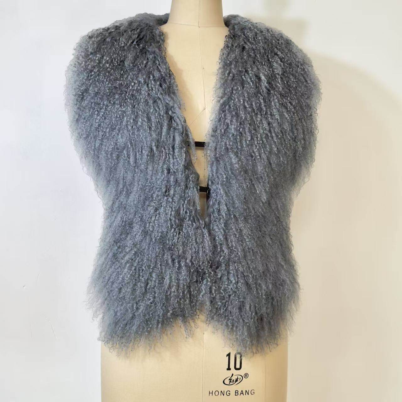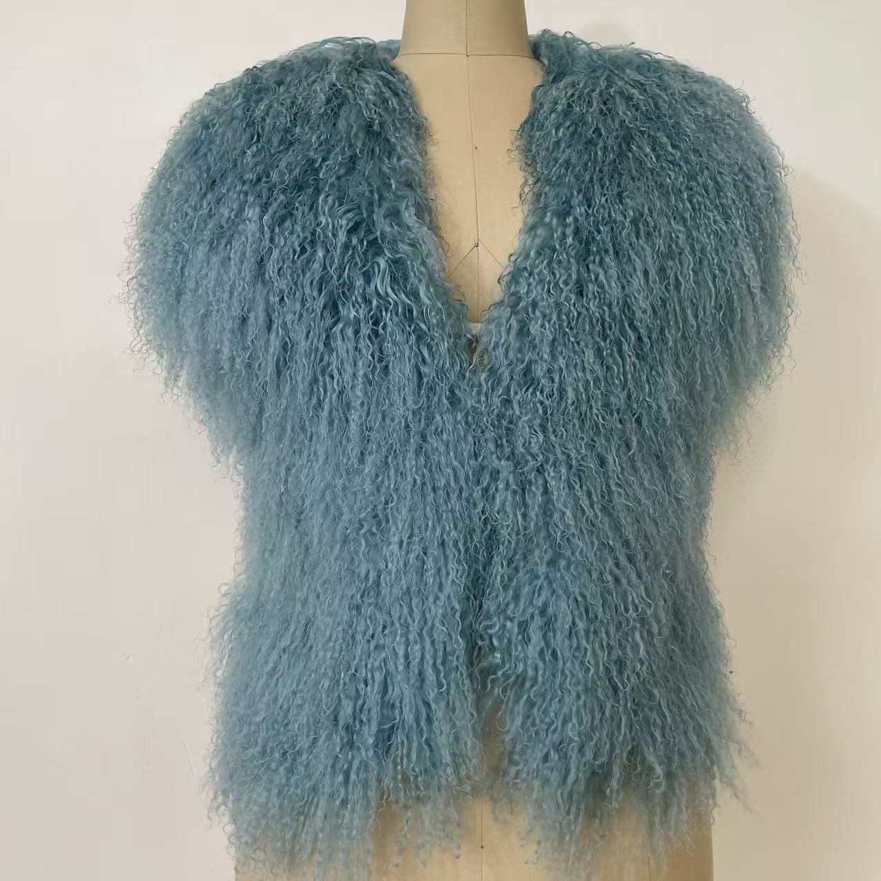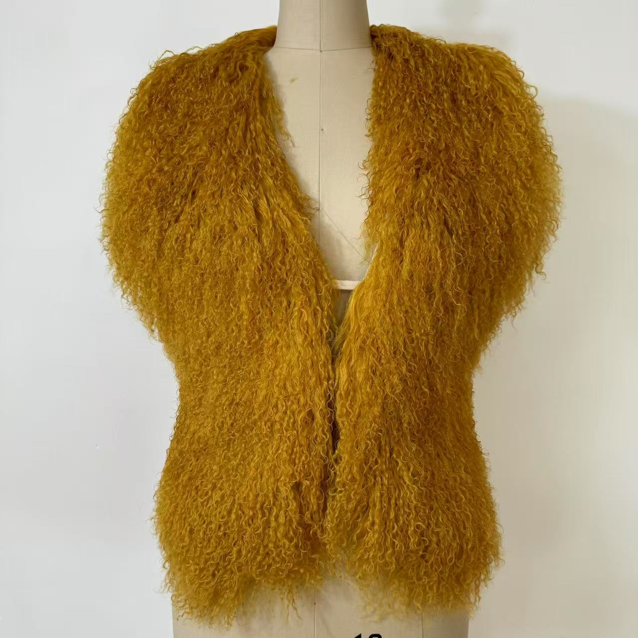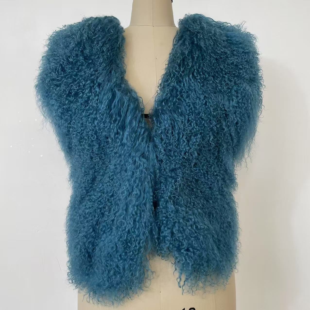 Sexy Mongolian Fur Backless Lacing Vest Waistcoat Woman Fluffy Halter Crop Top High Street Nightclub Cardigan Outfits