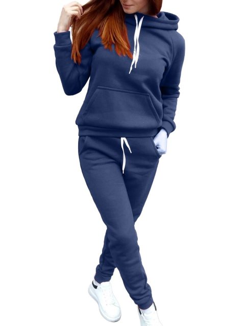 Ladies Sweat Suit Solid Color Hooded Sweatshirt And Pant Tracksuit Women Jogging Sport Set Lounge Wear Autumn Winter Clothes