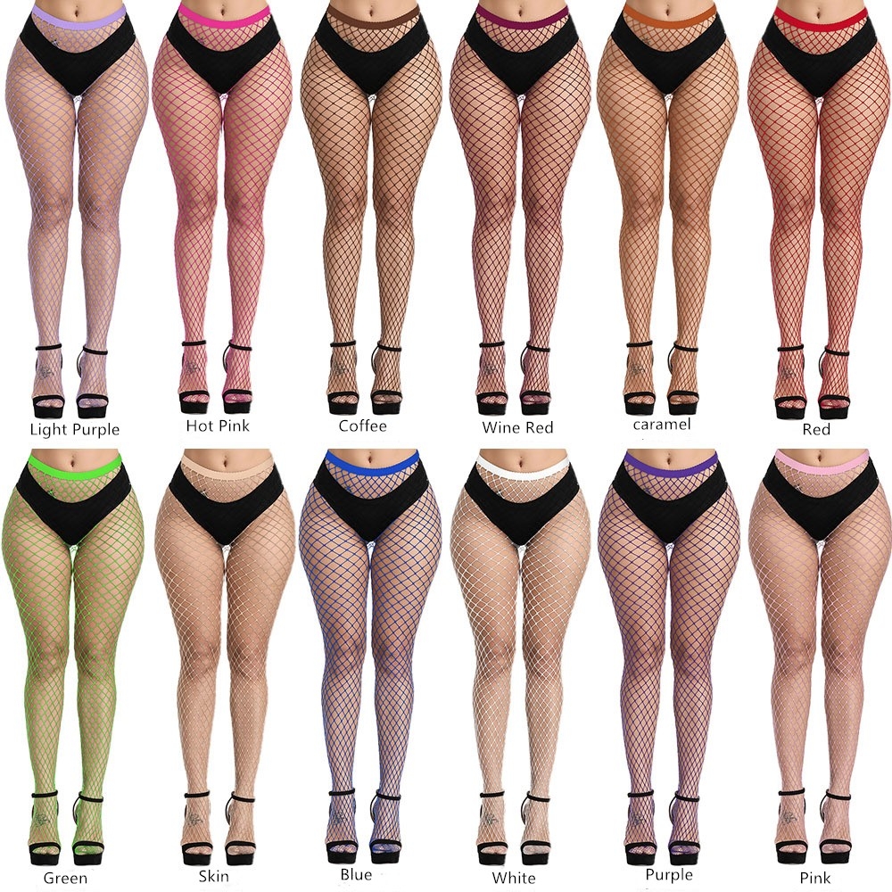 Sexy Women Fishnet Pantyhose Multicolor Plus Size Stocking Colored Small Middle Big Mesh Fish Nets Tight Anti Hook Nylon Tights