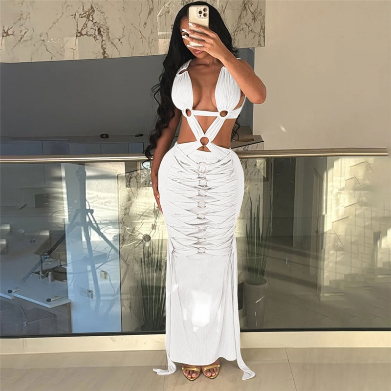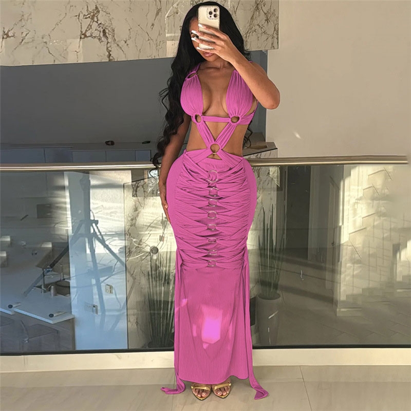 Sexy Women’s Cross Hollow Out Long Dress Luxury Backless Chic Curvy Dresses Coquette Beach Birthday Party Evening Cocktail Pink
