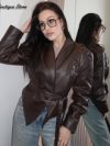 Sheepskin Coat For Women Leather Jacket Winter Spring Moto Biker Genuine Top Quality Black