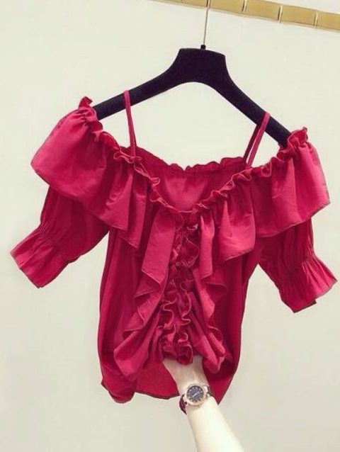 Ruffle Youth Elegant Blouses Tops Women Fashion Low Cut Blouse Summer Chiffon Shirt Pretty Bebeautiful Clothes