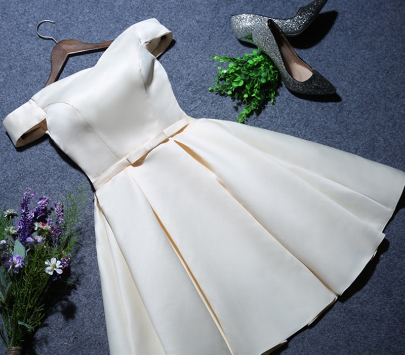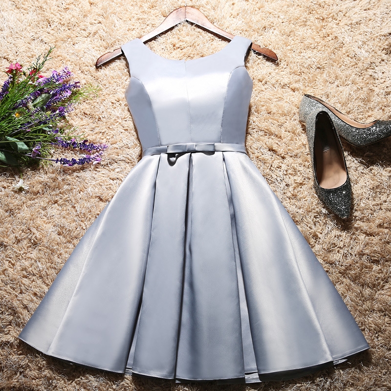 2 reviews for Short Knee Length Satin Sleeveless Cheap Evening Bridesmaid Dresses Wedding Party Formal Prom Homecoming Cocktail Dress Lace Up