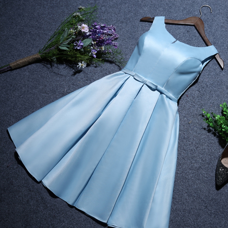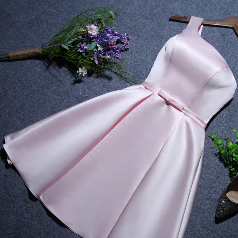 Short Knee Length Satin Sleeveless Cheap Evening Bridesmaid Dresses Wedding Party Formal Prom Homecoming Cocktail Dress Lace Up