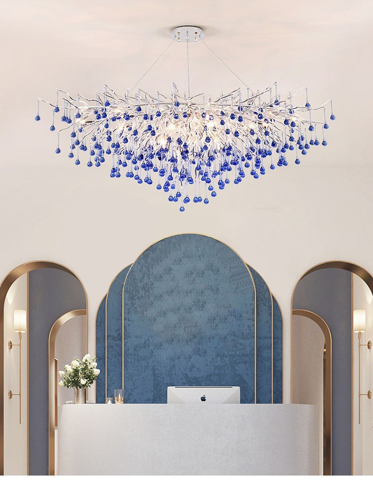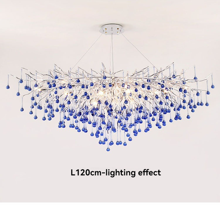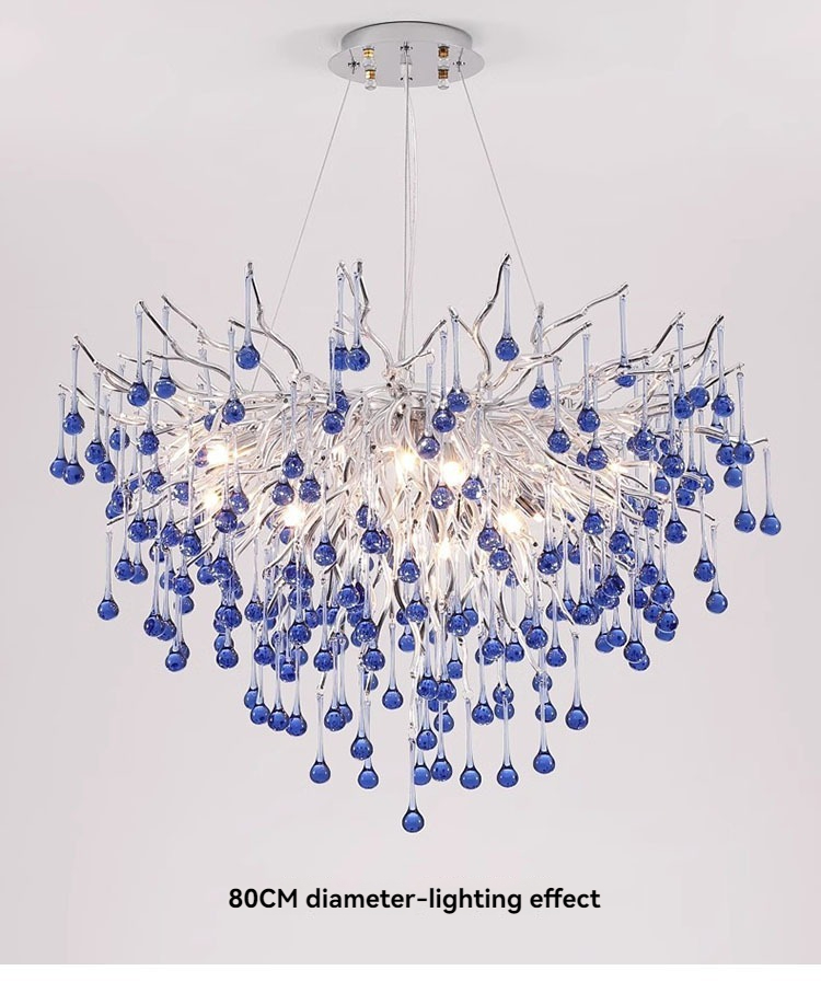 Silver Modern Bule Crystal Branch Chandelier for Living Room Dining Room Raindrop Crystal Pendant Lamp Fixture Kitchen