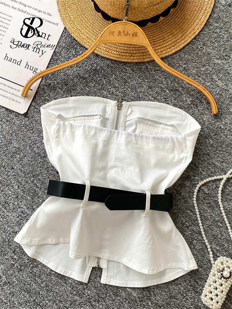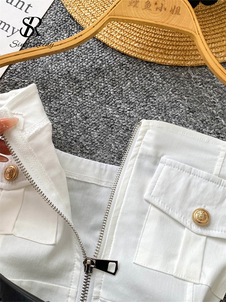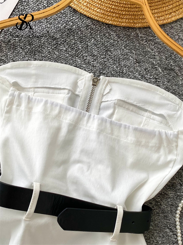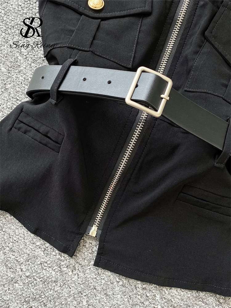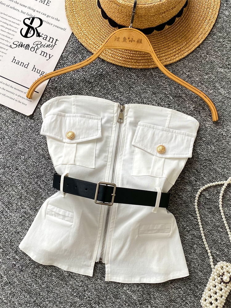 SINGREINY Safari Style Sexy Top 2025 Ladies Sleeveless Pockets Sashes Short Camisole Streetwear Strapless Zipper Retro Tank Top