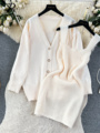 SINGREINY Autumn Knitwear 3PC Sets Long Sleeves Cardigan+Single Breasted Spaghetti Strap+High Waist Elastic Shorts Casual SuitsUSD 29.35/piece